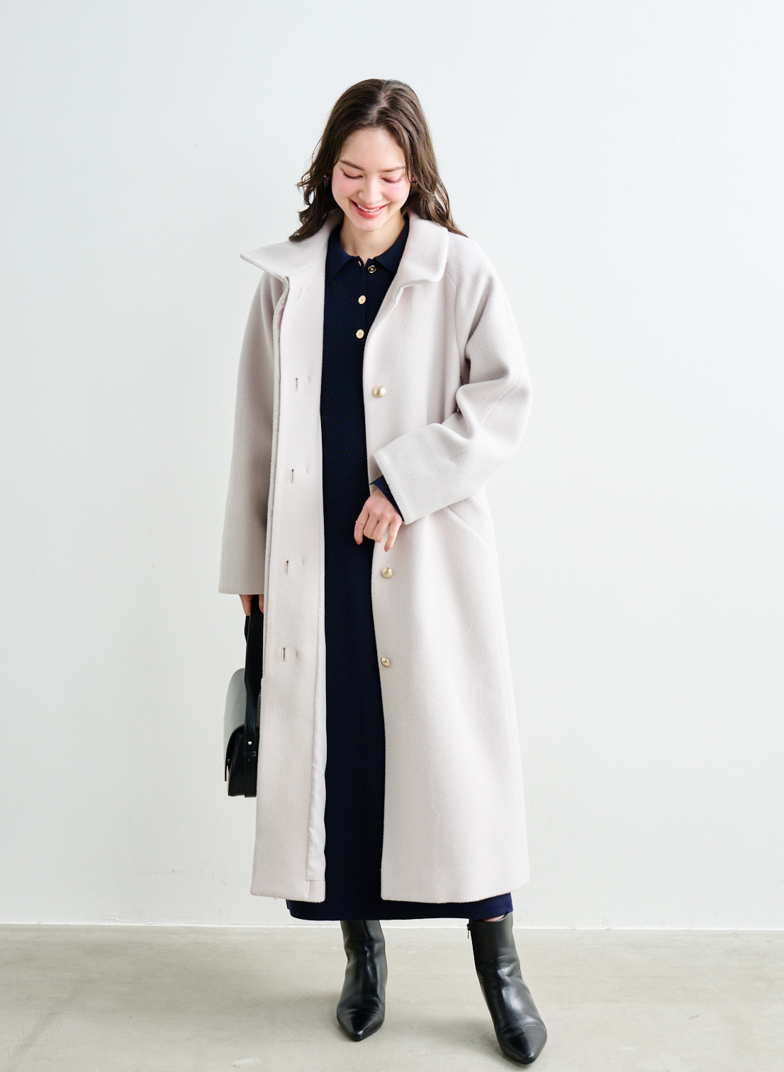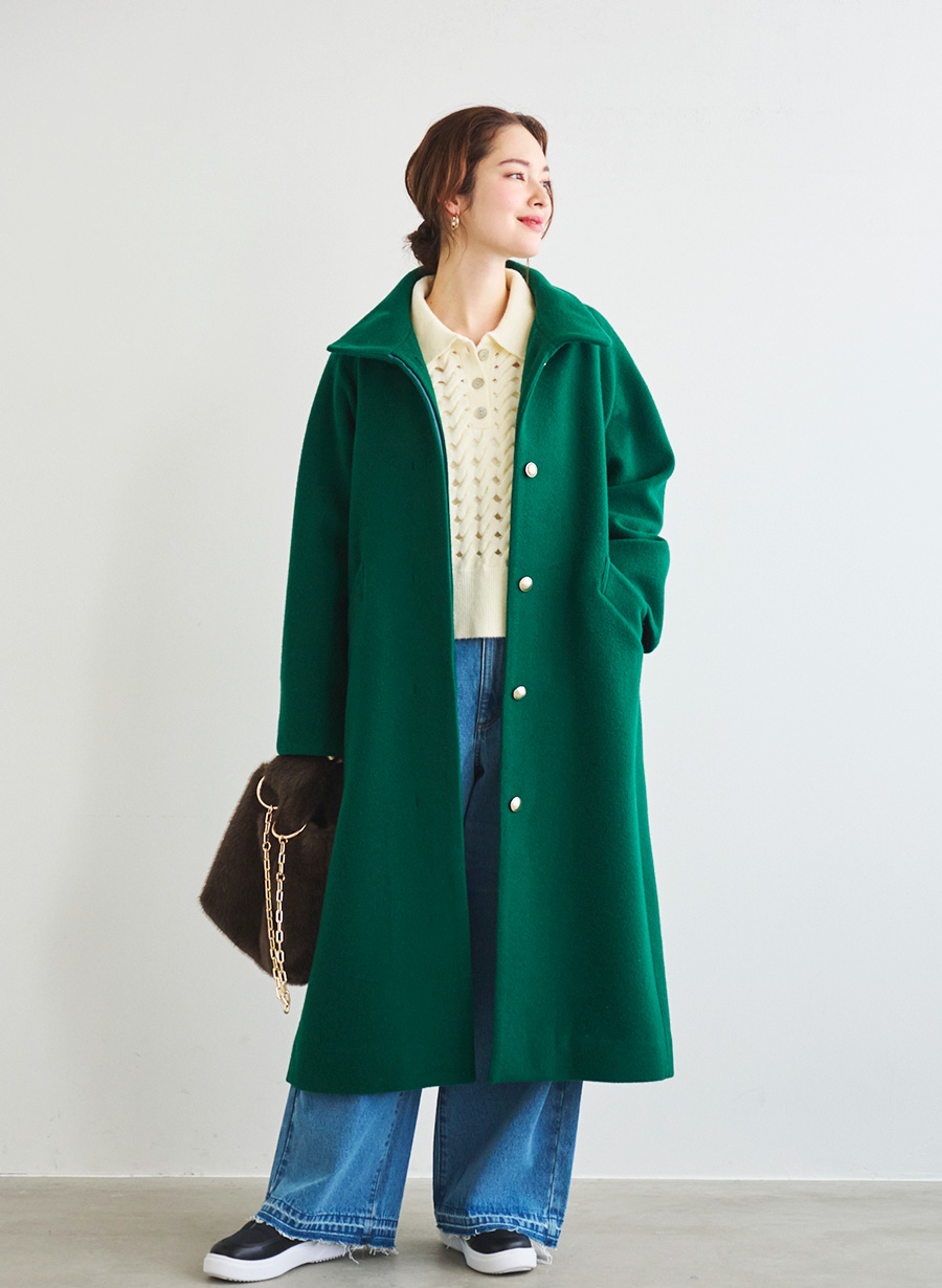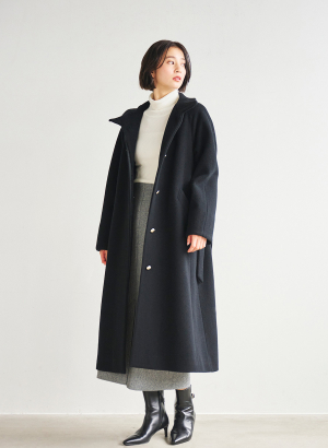 5. <メリノウール>スタンドカラーベルテットロングコート