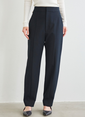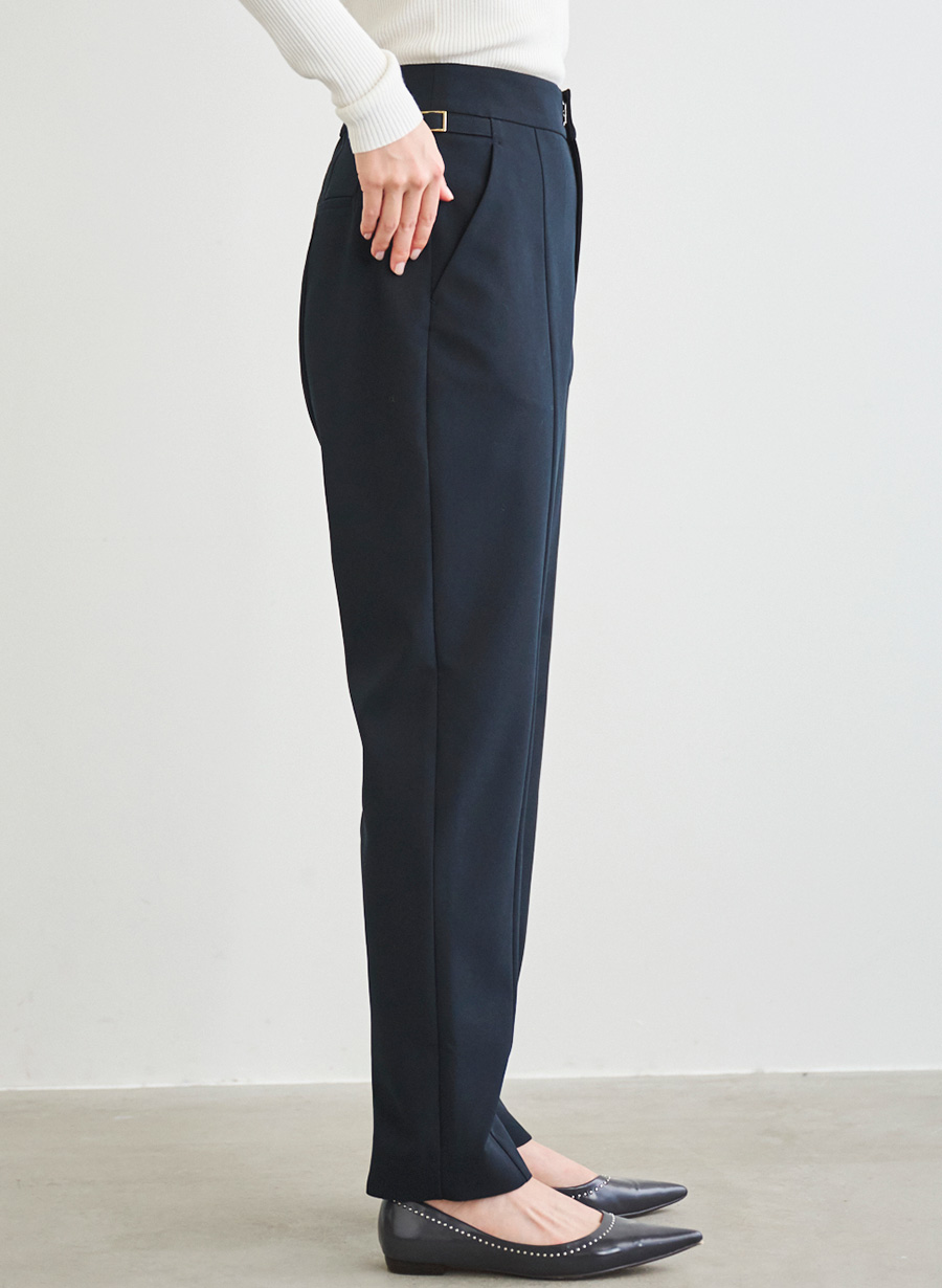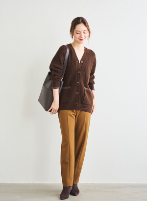 ・冬のざっくりしたニットともスッキリ合わせやすい、さらりとした表情の素材感がオススメのパンツです。