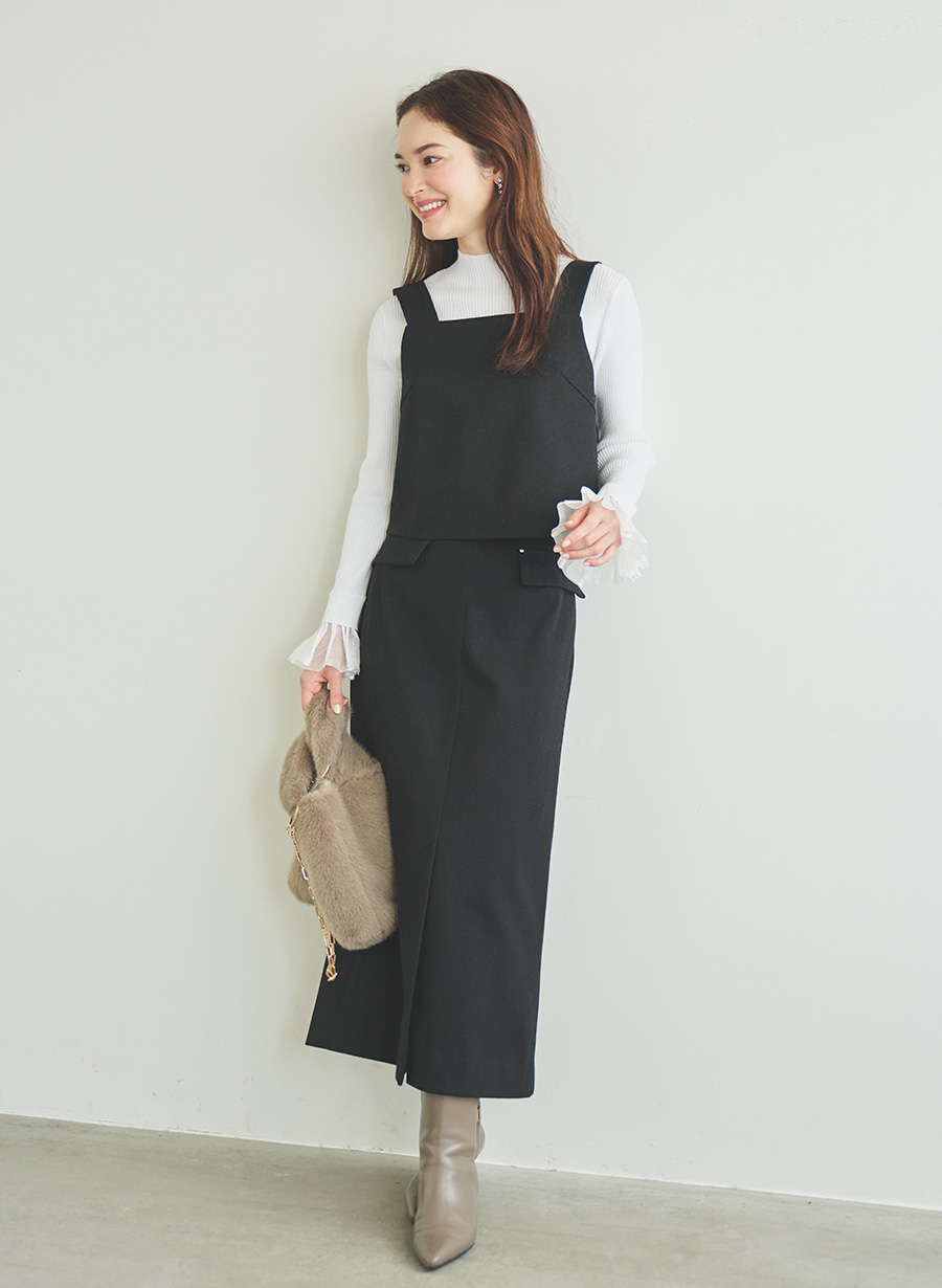 【着用感】太めの肩紐でレイヤードしやすく収まりが良い。アウターインにも着映えるトレンドビスチェ✨set upで着るととっても可愛くおすすめです❤︎