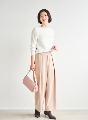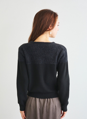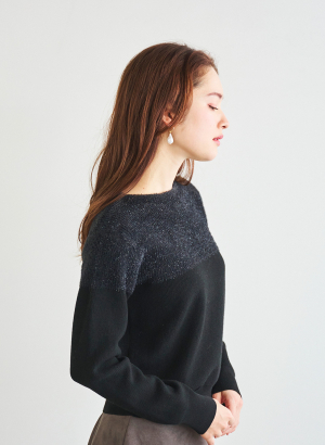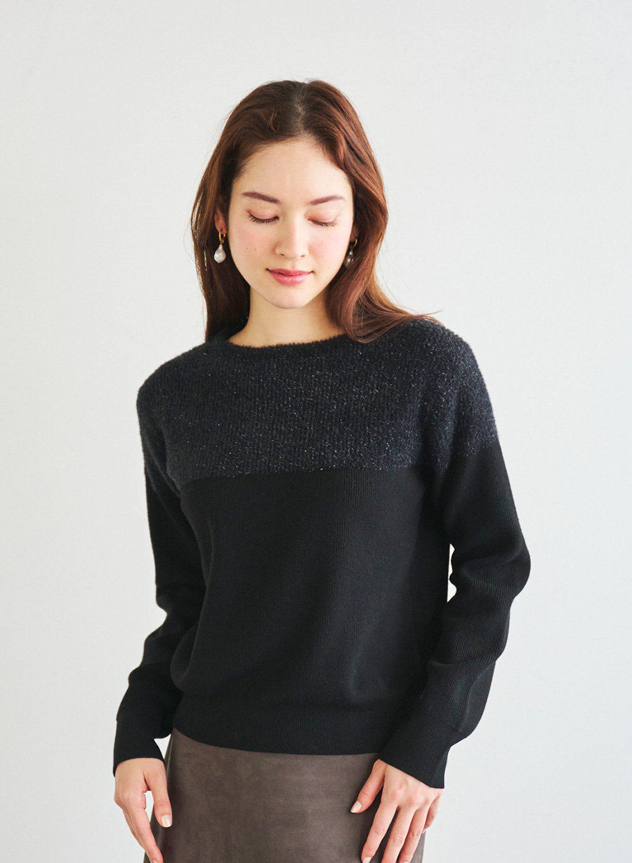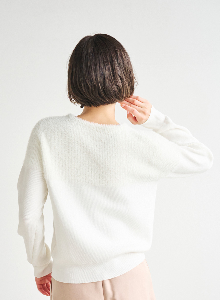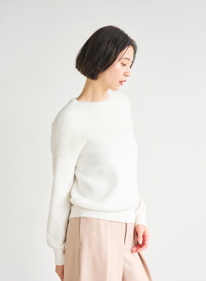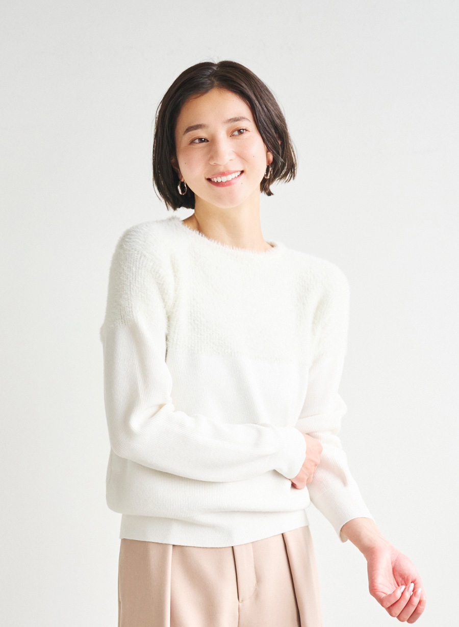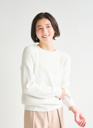 ふんわり感のあるフェザーヤーンを使用し、柔らかなタッチの素材感がポイントです。