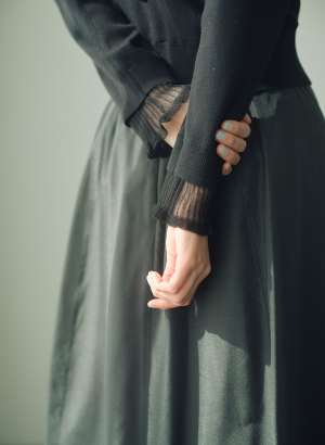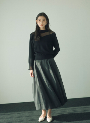 【着用感】シアー部分が華やかな透け感で、パーティーなどでも着映えするデザイン。前後2wayでコーデによって変えられるので便利。