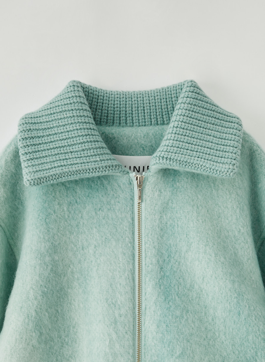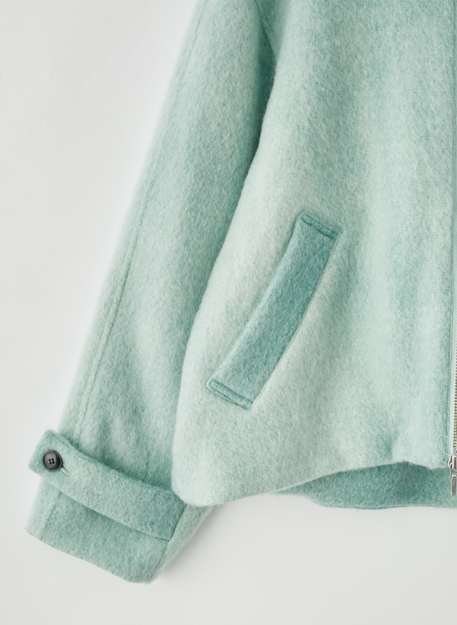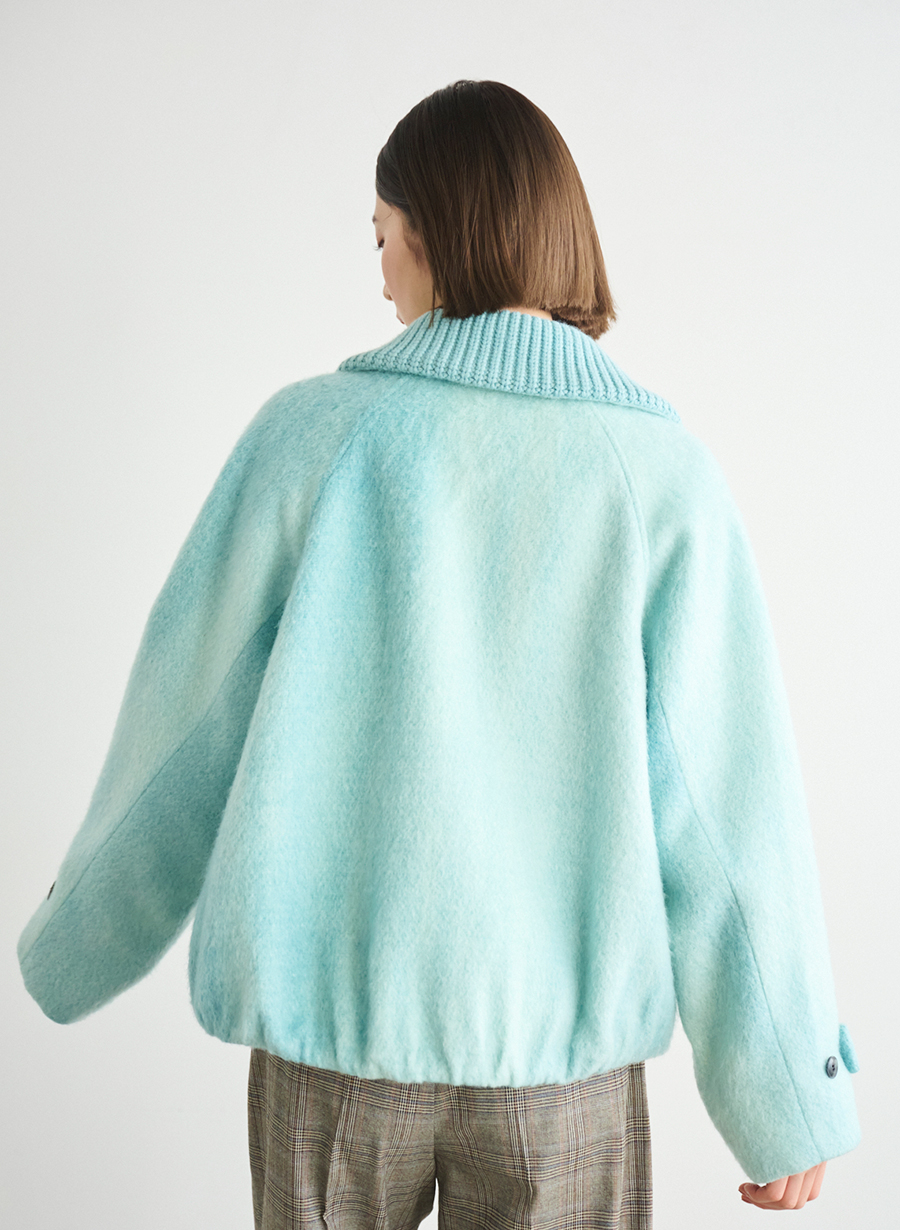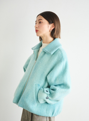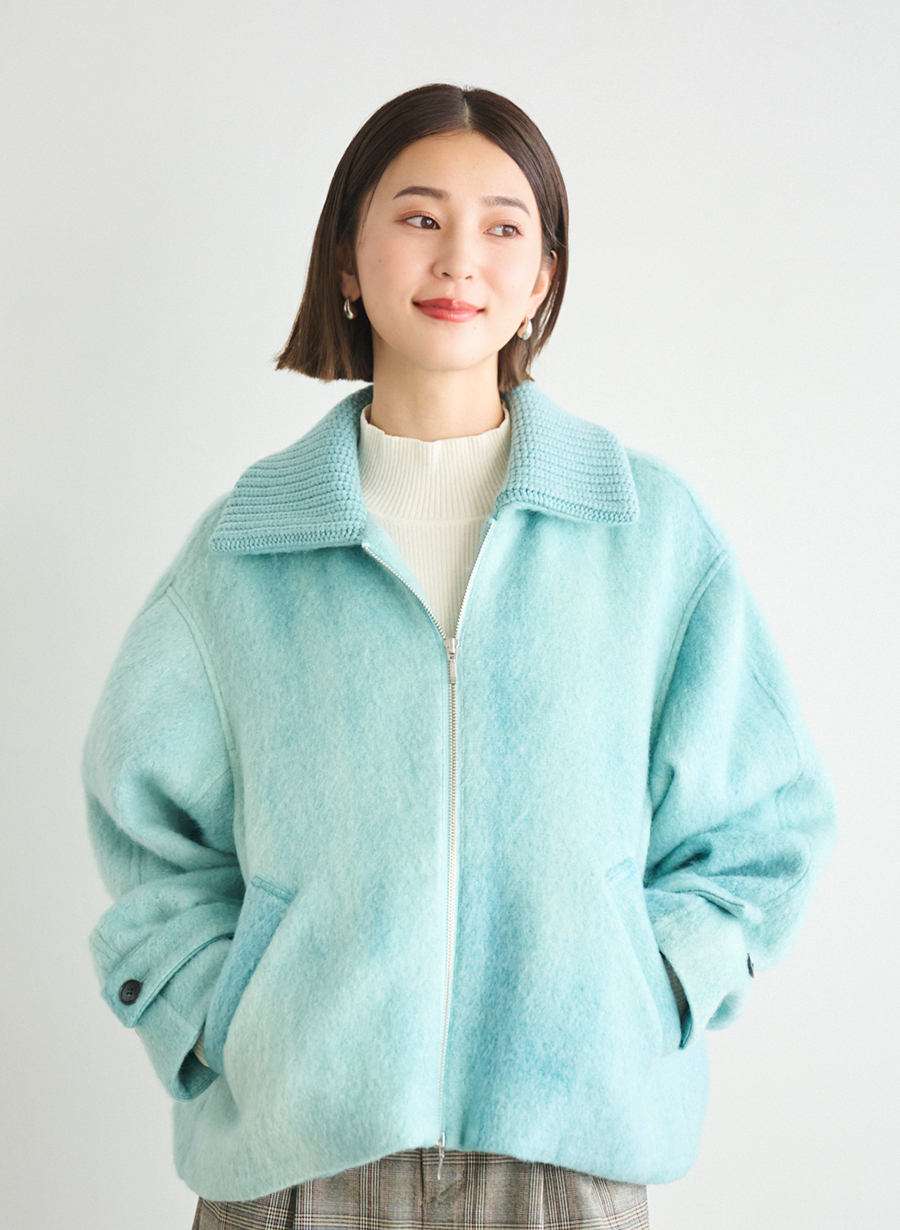 ・特徴のある素材で、ブルゾンライクなショートコート。