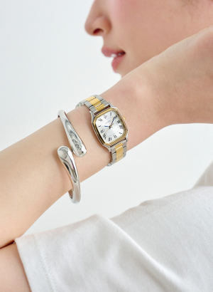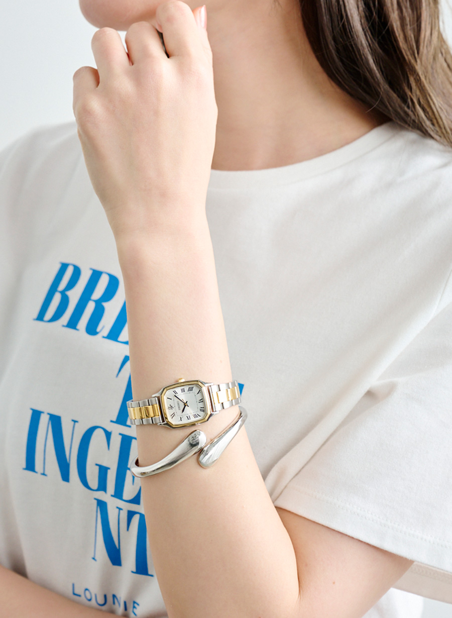 カラーはシルバー×ゴールドで組み合わせた仕様。合わせるアクセサリーを選ばない汎用性の高い配色にしています。