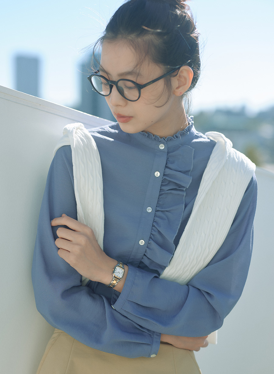 ベーシックの中にエレガントなムードを香らせ、LOUNIEの着こなしにマッチするイメージに仕上げました。