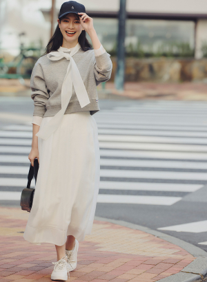 ・取り外しのボウタイにより 顔周りを華やかに見せてくれます。
