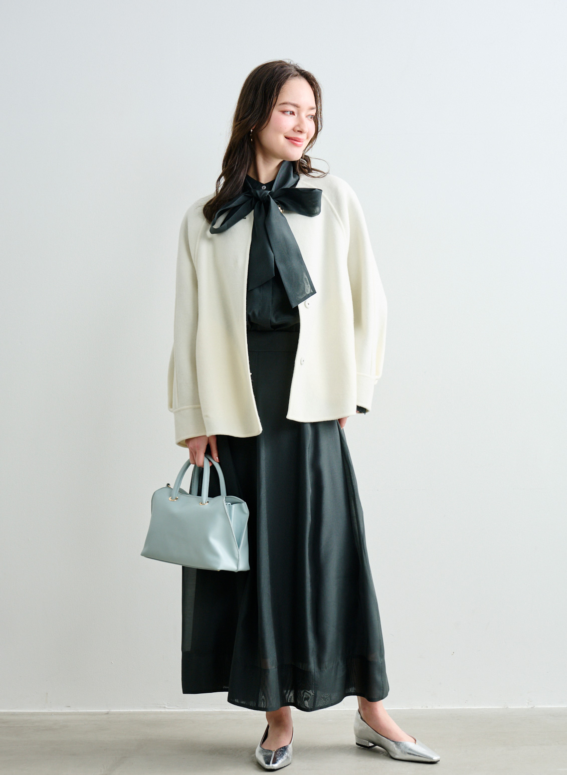 ・この構築的なシルエットが、ブラウスをエレガントに見せてくれます。