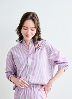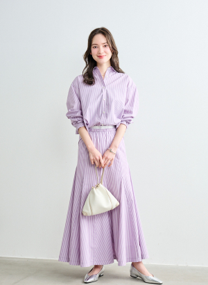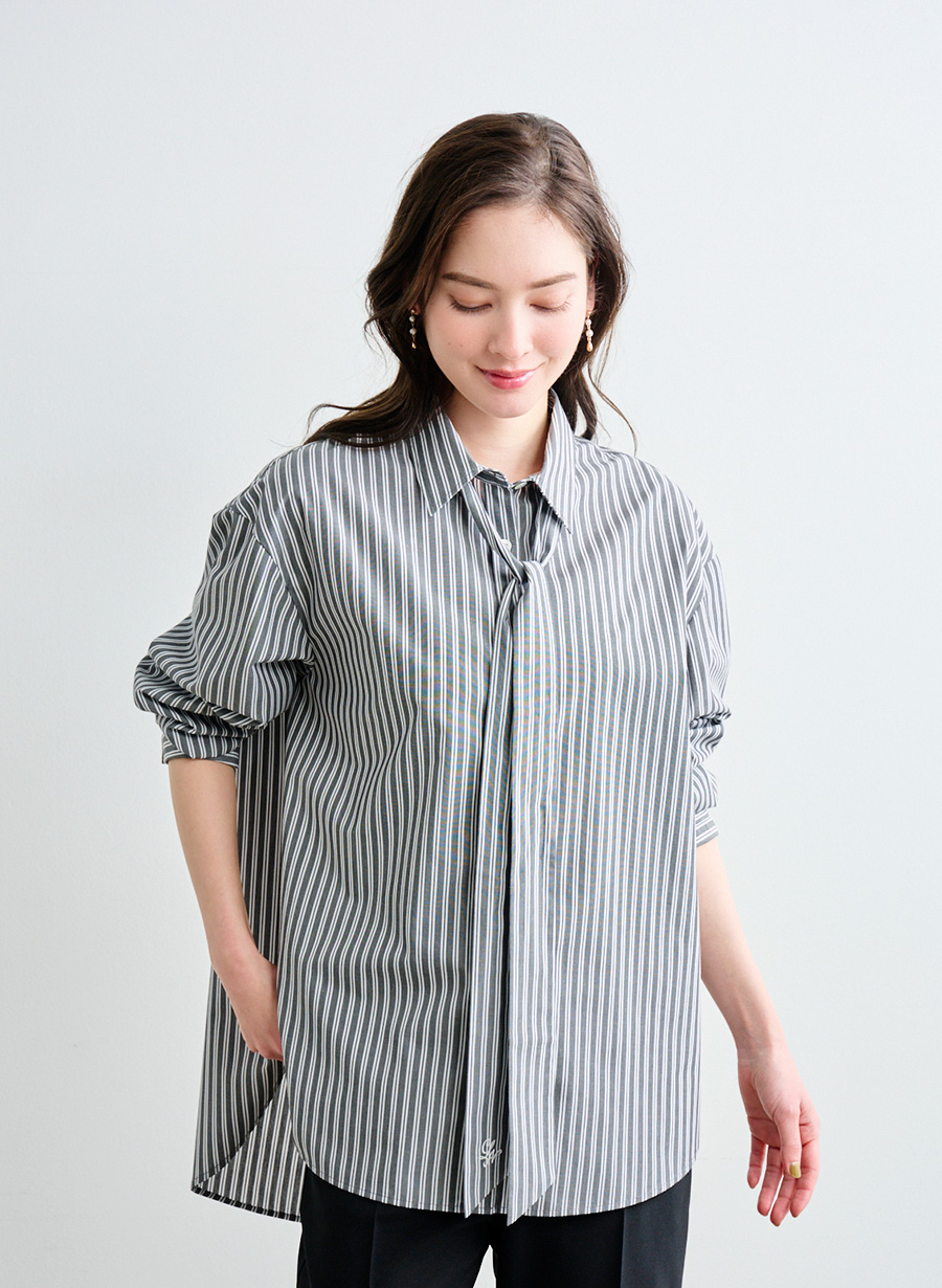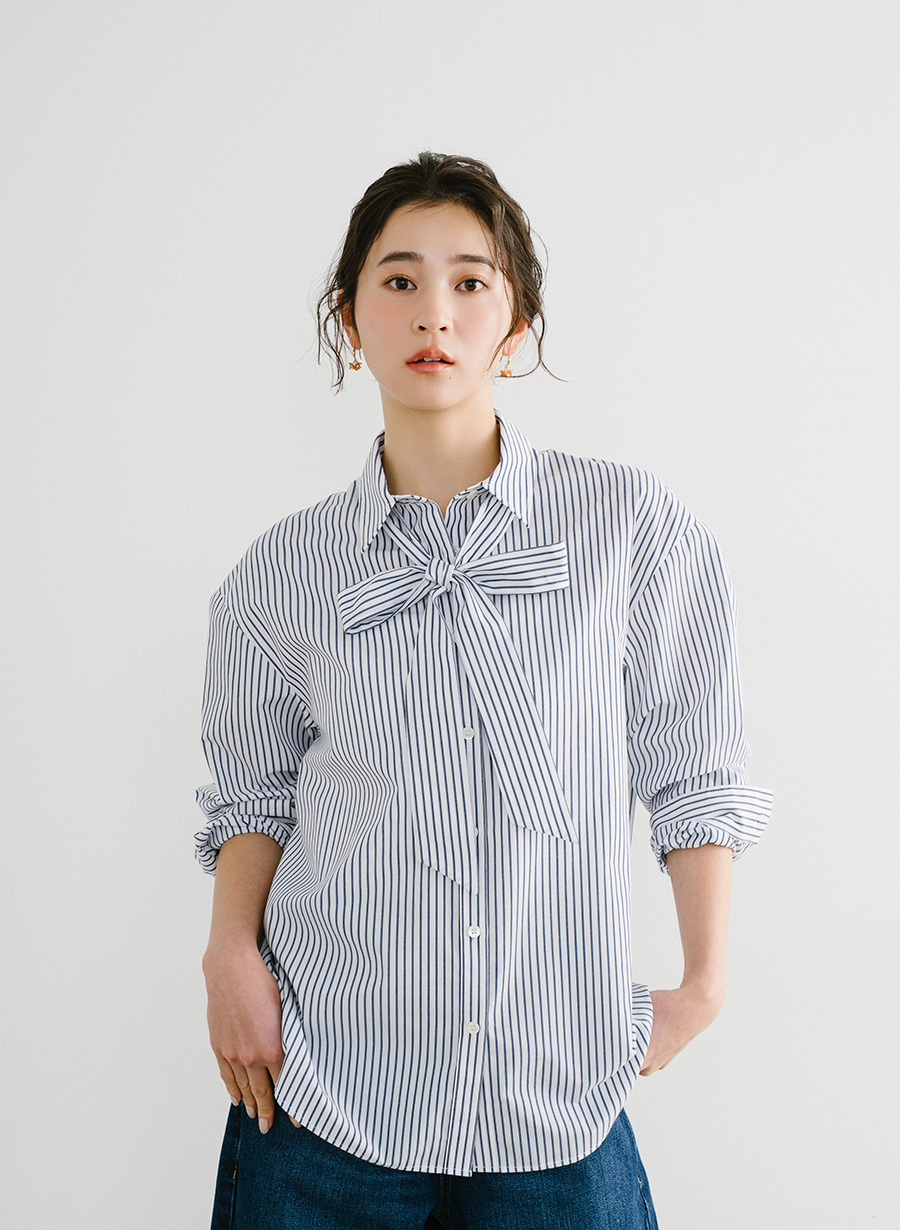 ・ クリーンな印象のストライプ柄で、ベースはゆったりめのシャツ ・ボウタイは取り外し可能。