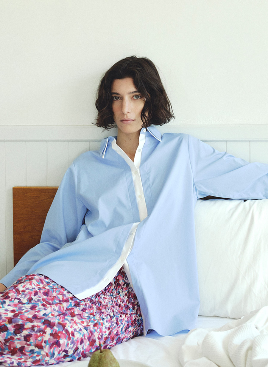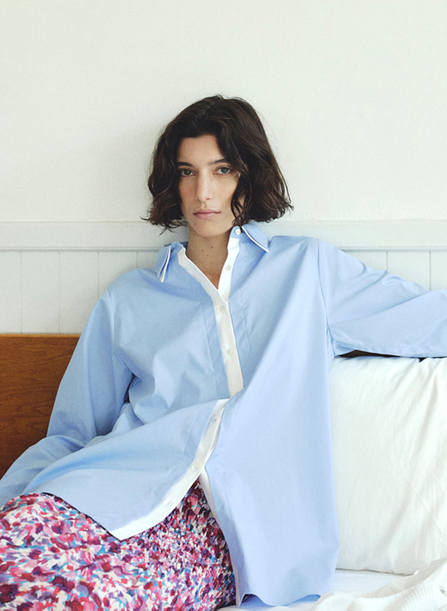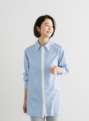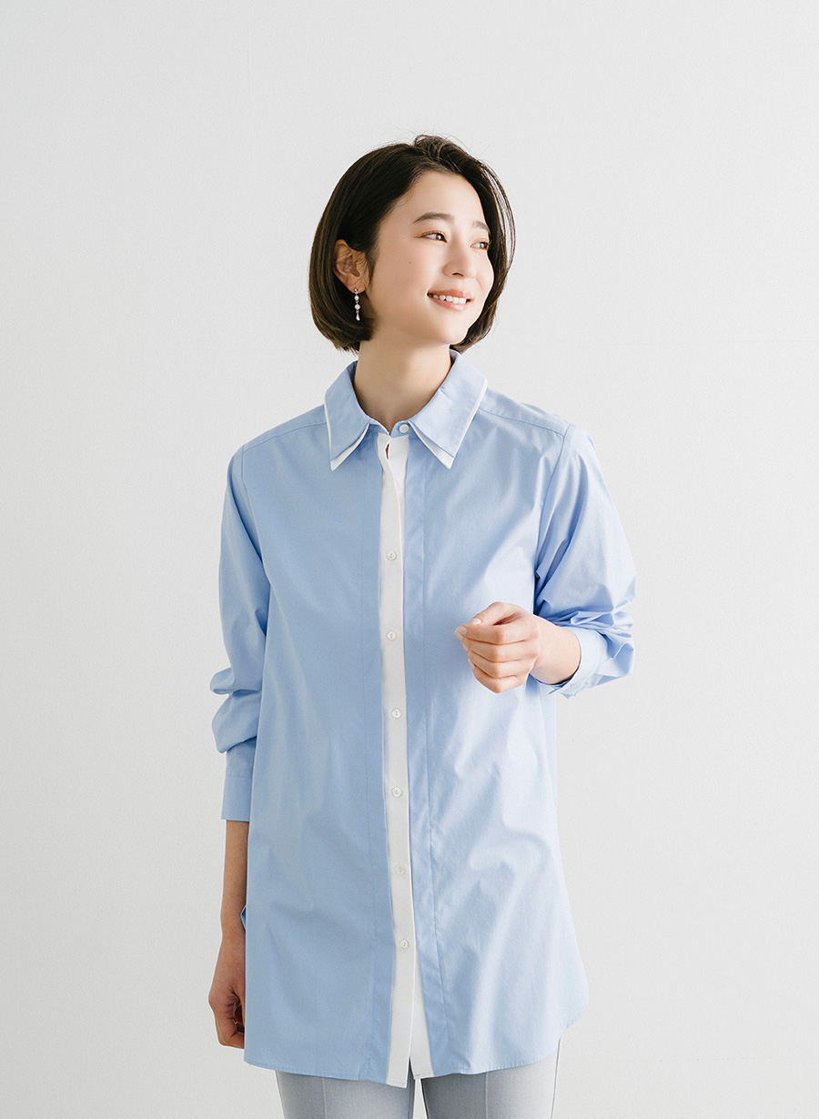 ・衿と前立て部分をレイヤード風デザインがポイント。