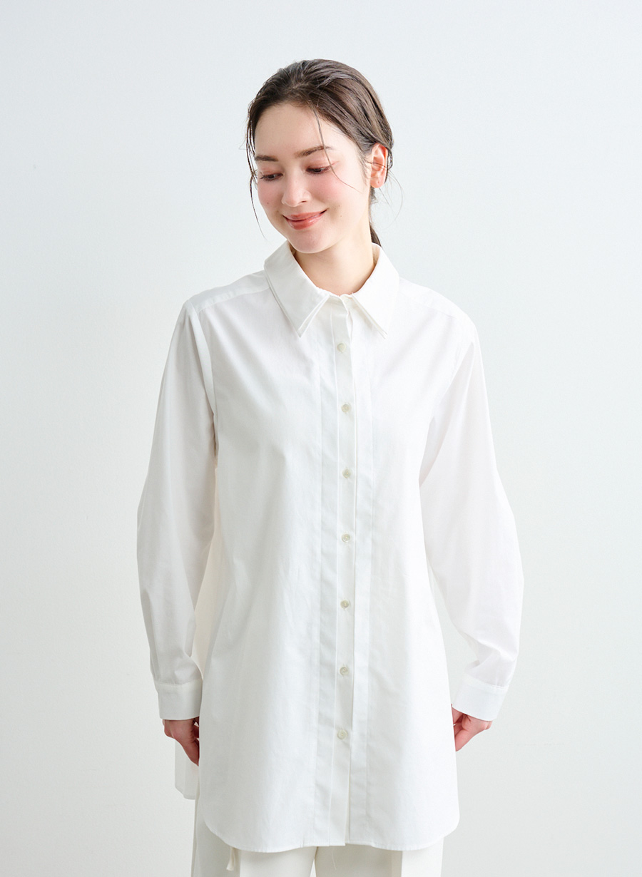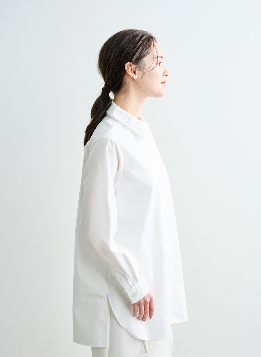 希少な超長綿であるスーピマコットンとポリエステルとの混紡糸を使用して織り上げ、しなやかでハリ・コシのある風合いが特徴。
