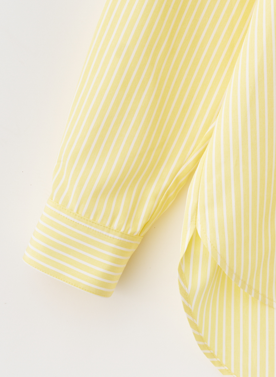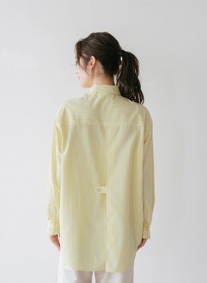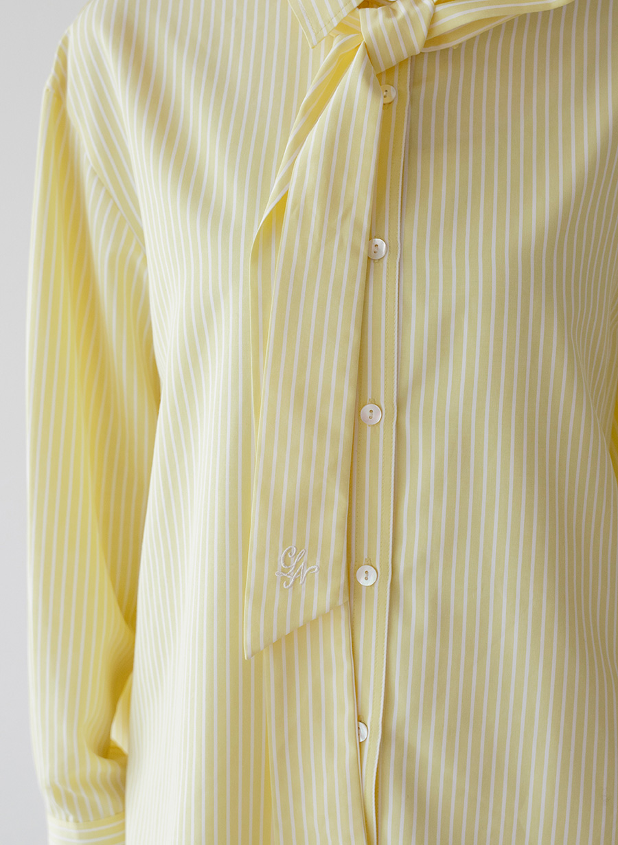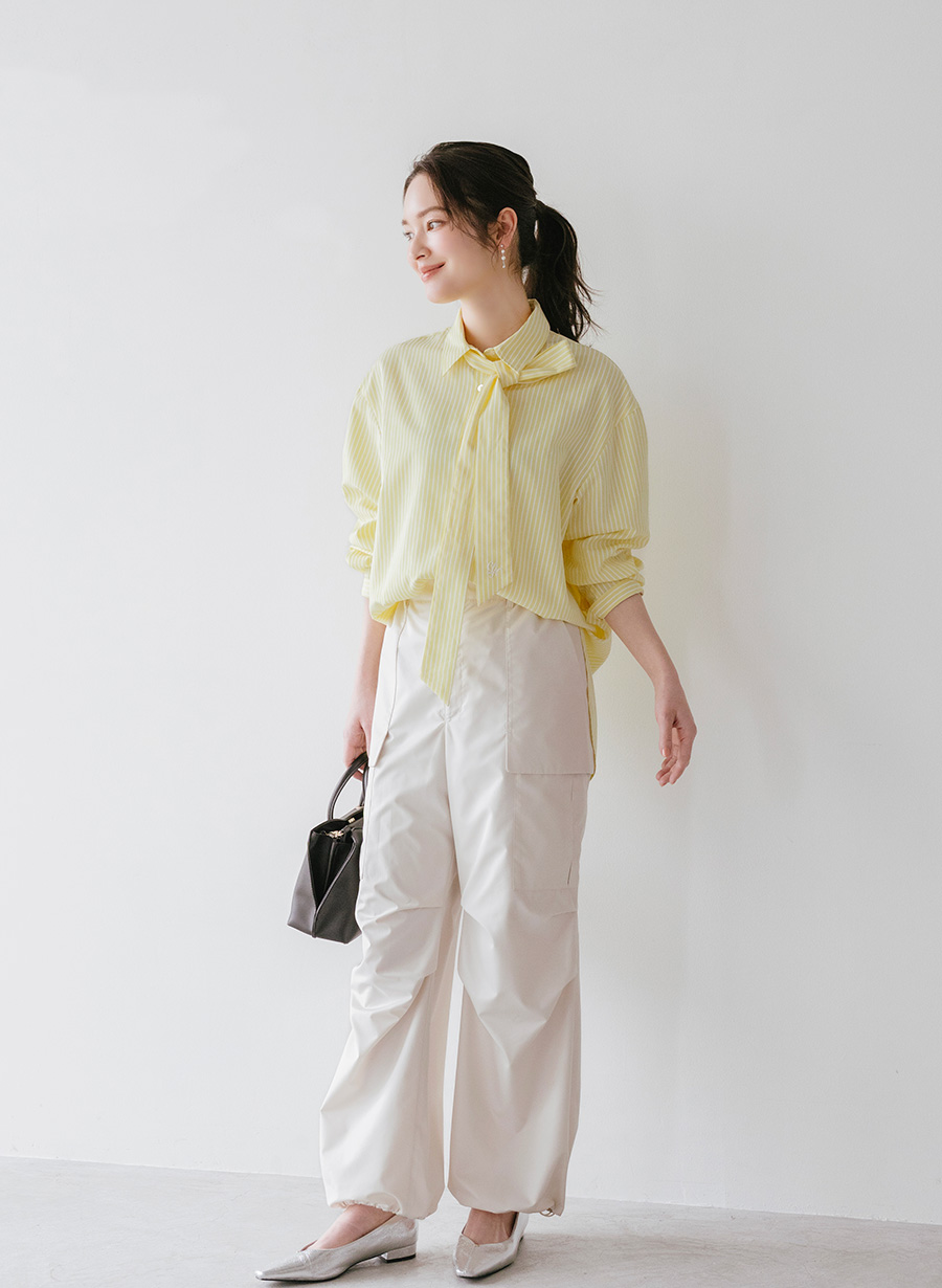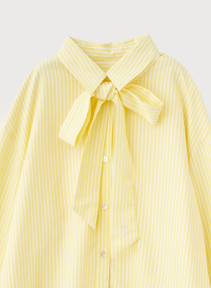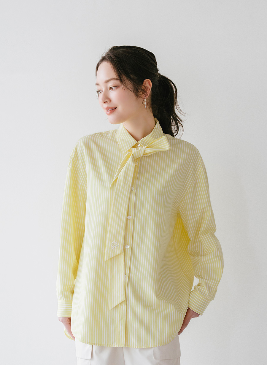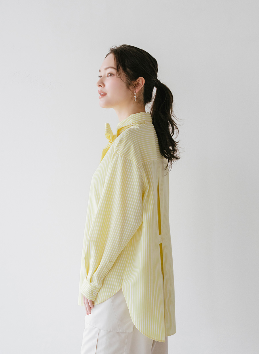 ・ クリーンな印象のストライプ柄で、ベースはゆったりめのシャツ ・ボウタイは取り外し可能。