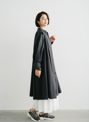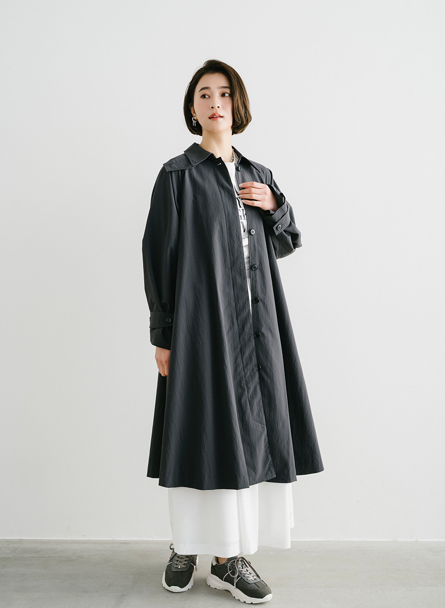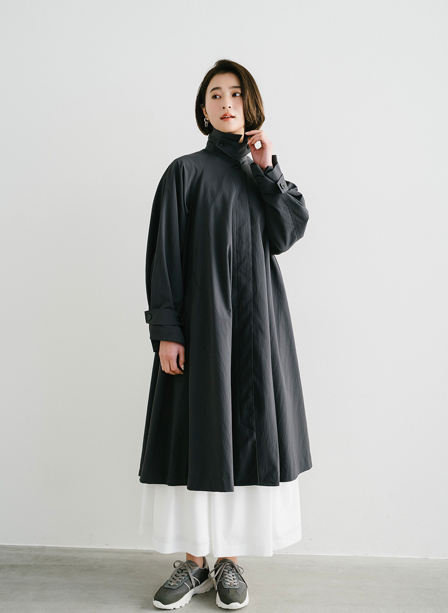 ・贅沢に生地を使用した分量感のあるポンチョシルエットのコート。