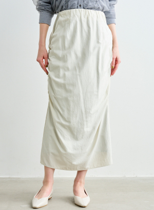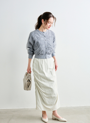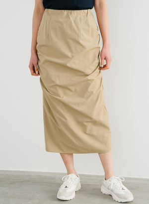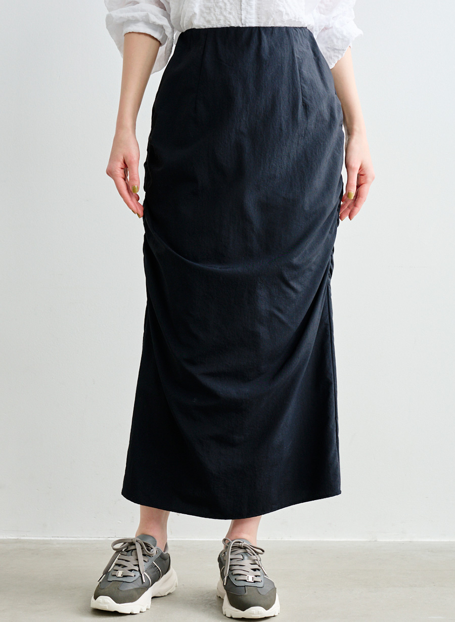 ・ナローシルエットをベースに両サイドに施されたシャーリングがデザインポイント。