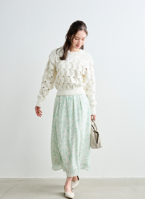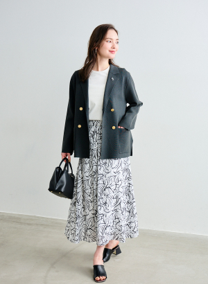 ・ 素材の落ち感を活かし、少しのギャザーでふんわりとした美しいAラインシルエット。