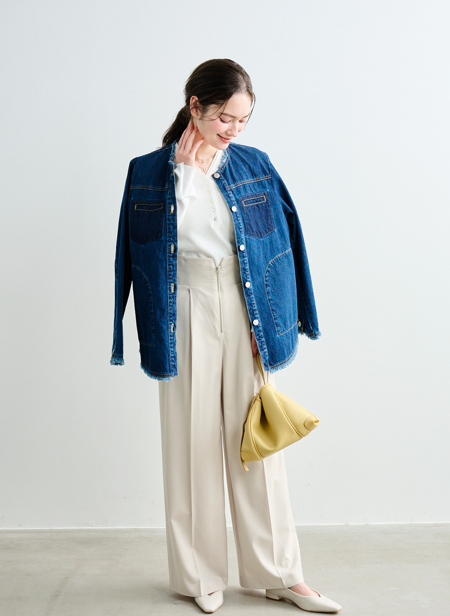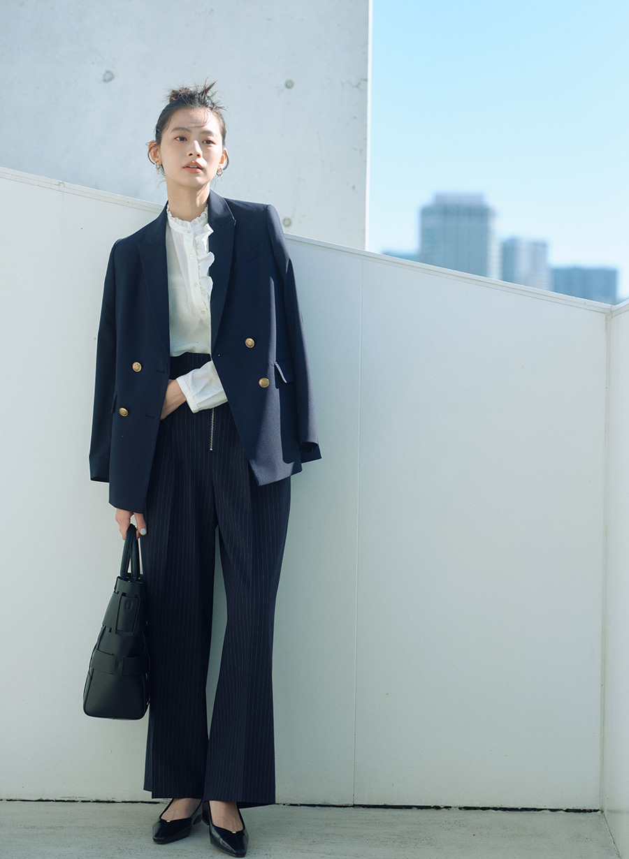 ・コンパクトなトップスをインして着ていただくと新鮮なバランス。