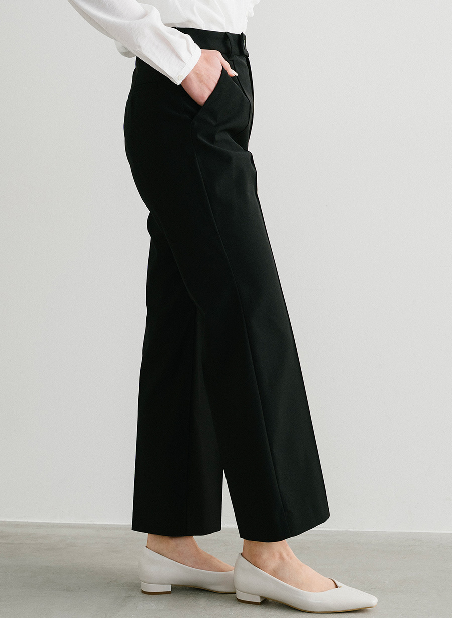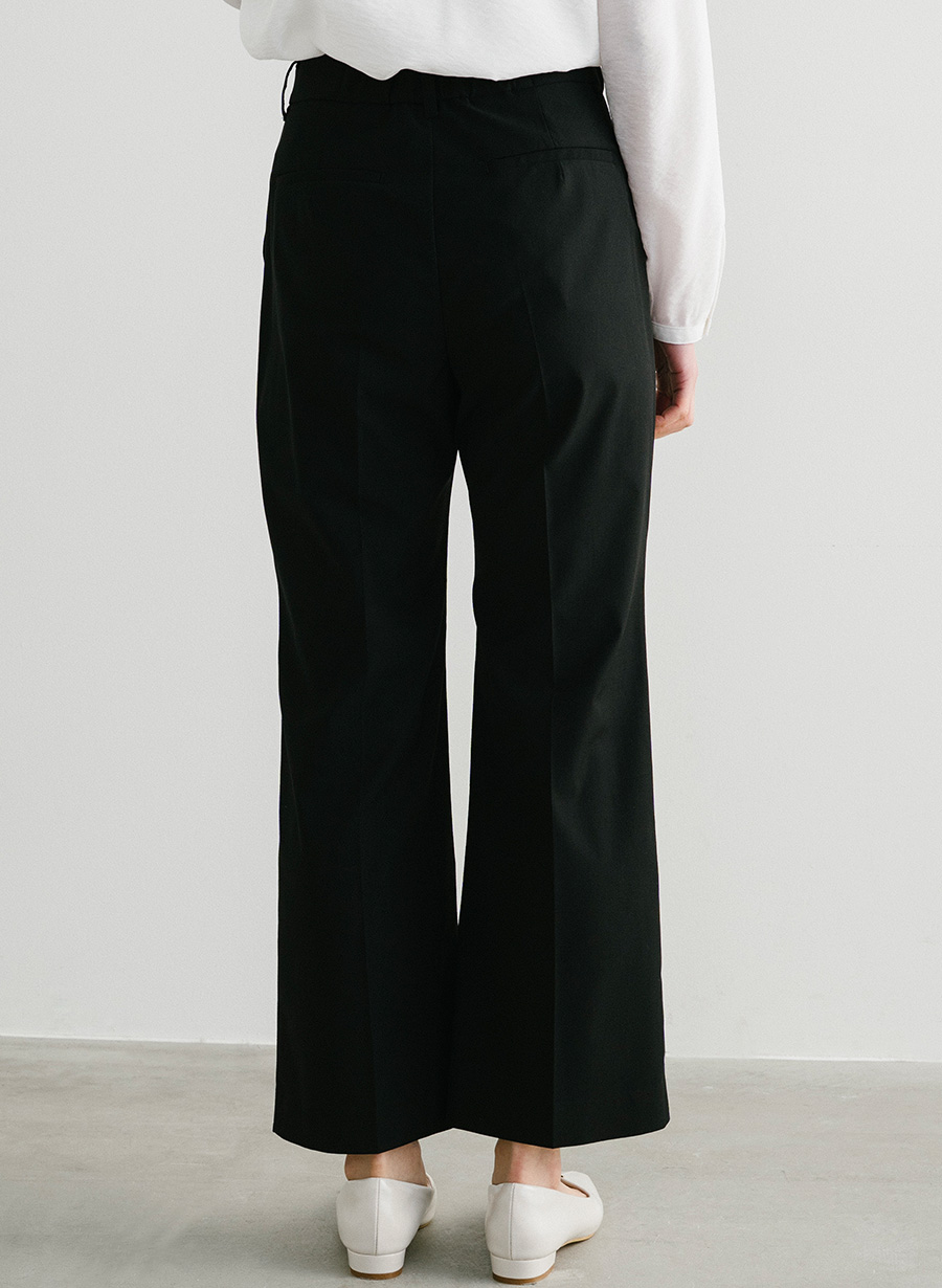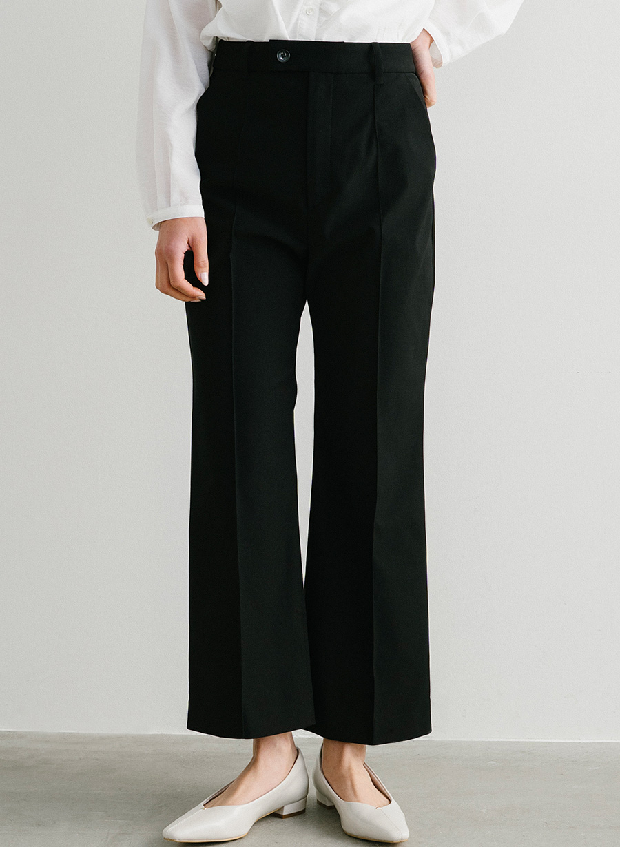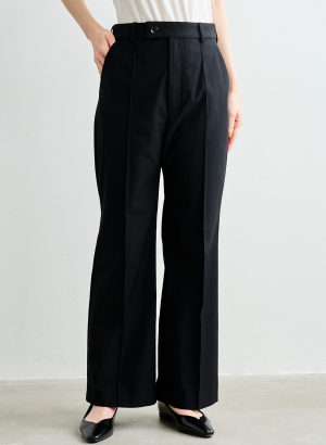 ・すっきりスタイルアップできるフレアシルエットとセンタープレスがポイント。