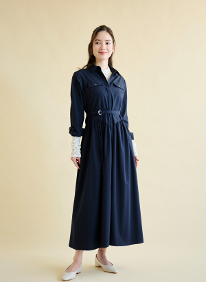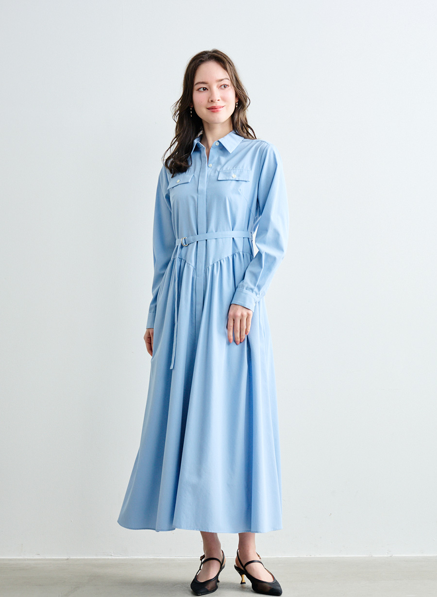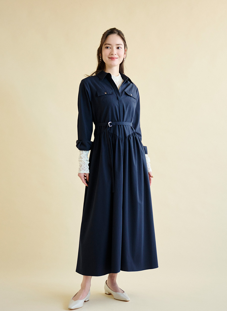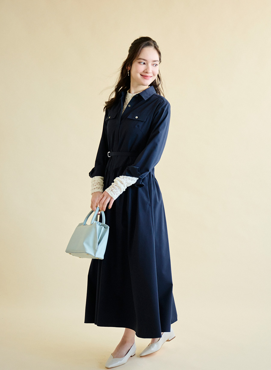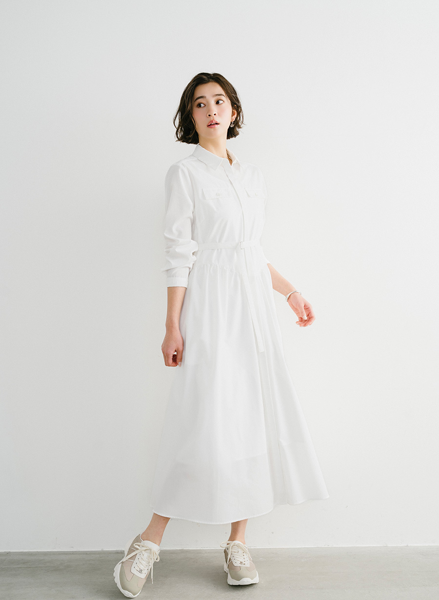 ・細めのベルト付きでウエストマークすることで、スタイルアップ効果抜群です。