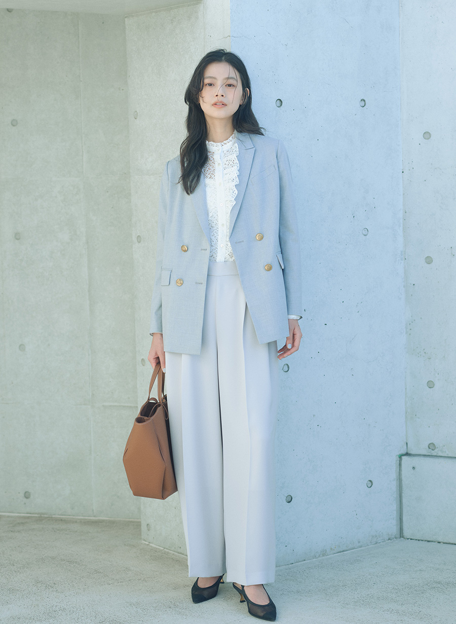ウール調オックスストレッチダブルジャケット