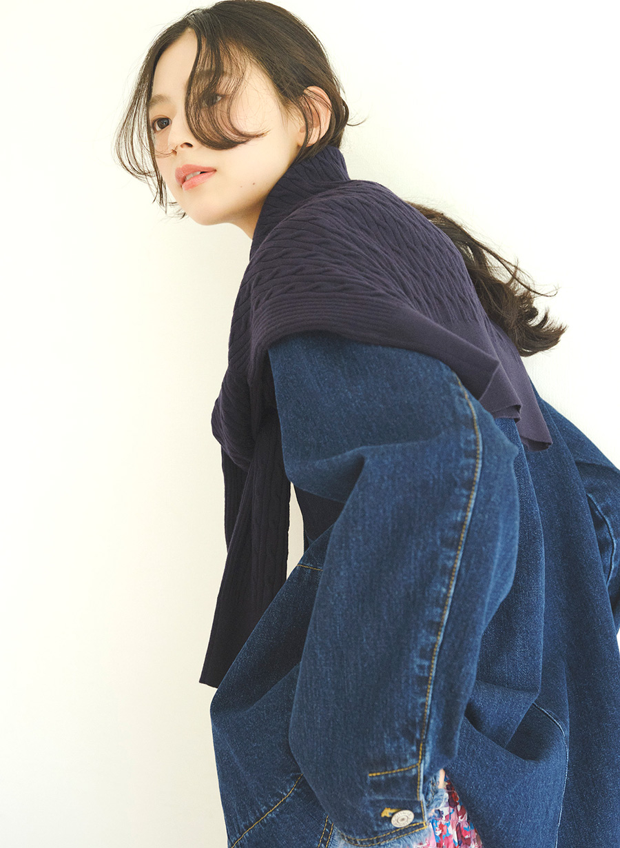 【着用感】見た目より軽く、肩まわりも動かしやすい着心地。今っぽさが出る一枚です。