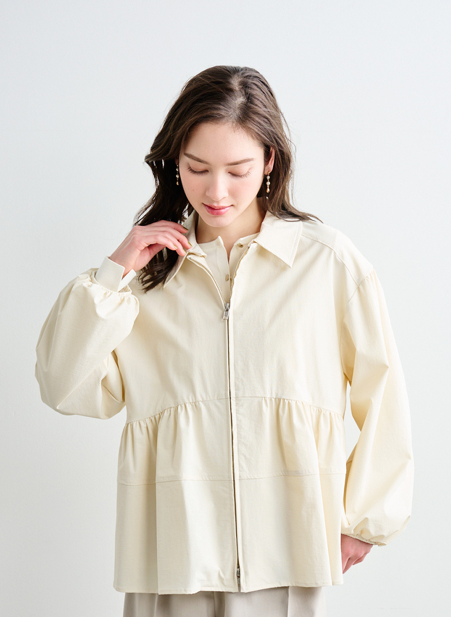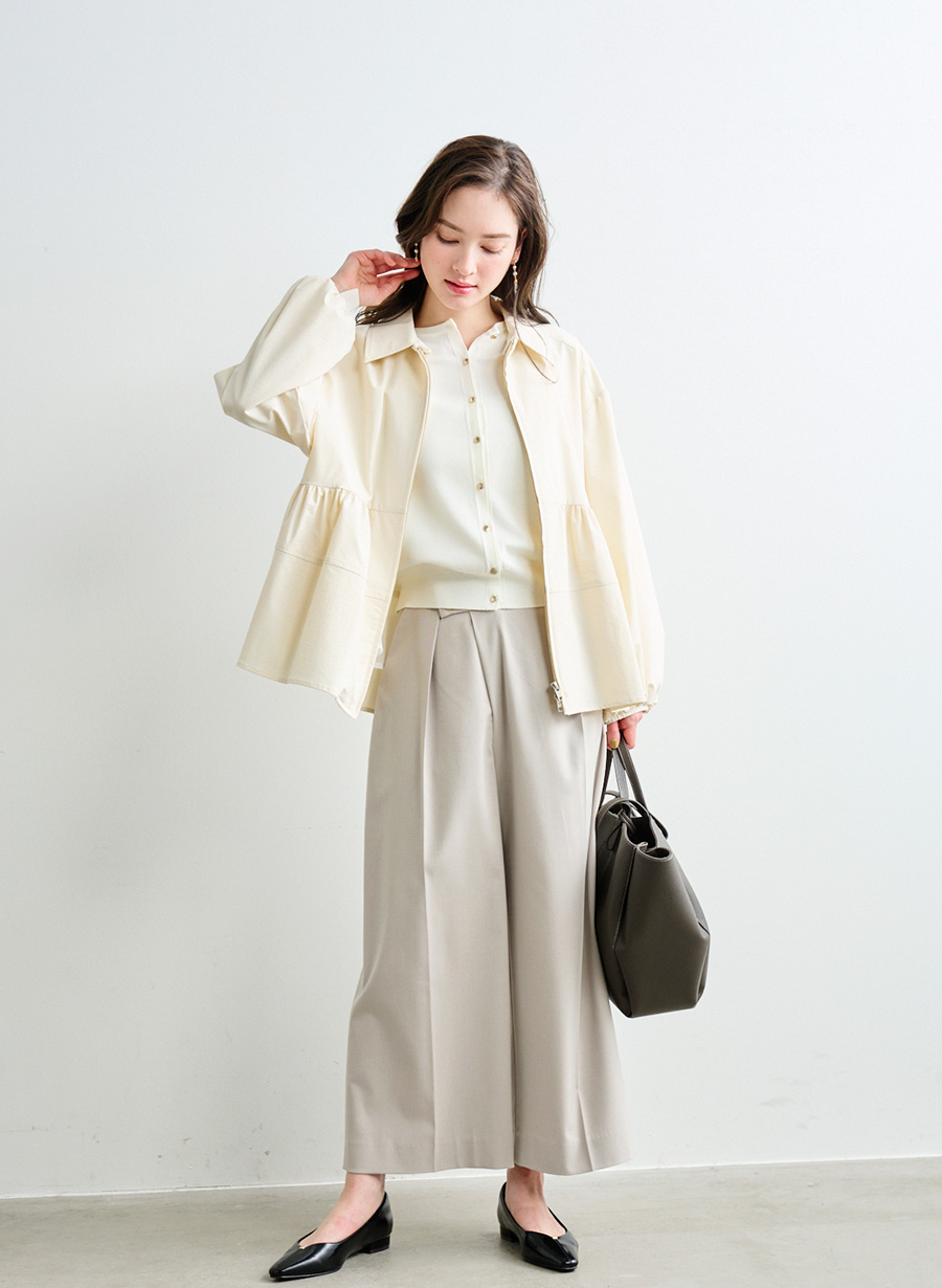 ・ カジュアルになりがちなブルゾンを、女性らしいデザインでアップデート。