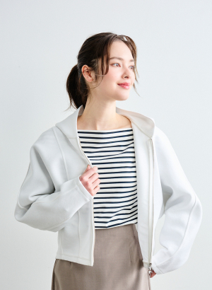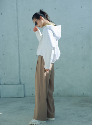 ・前を短めに設計することで、ワイドパンツやスカートともバランスが取りやすく、スタイルアップ効果を発揮します。