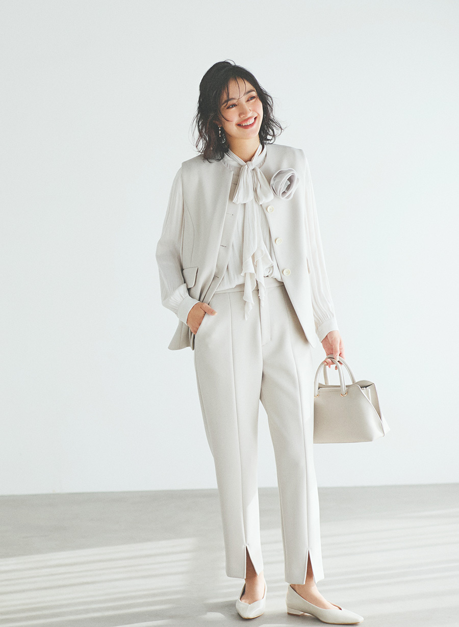 ・前後の切り替えにより、美脚を追求したパターン。細見えシルエットに拘りました。