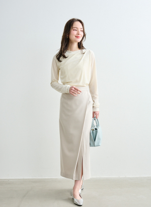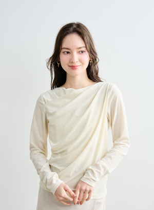 ・たっぷりとしたドレープ感と程良いVネック開きで、顔周りをすっきりと華やかに魅せてくれます。
