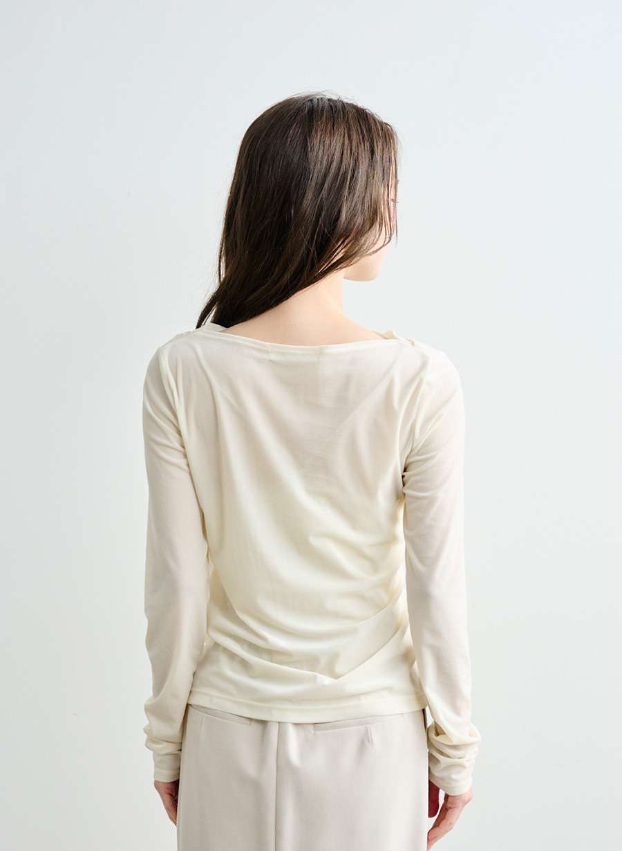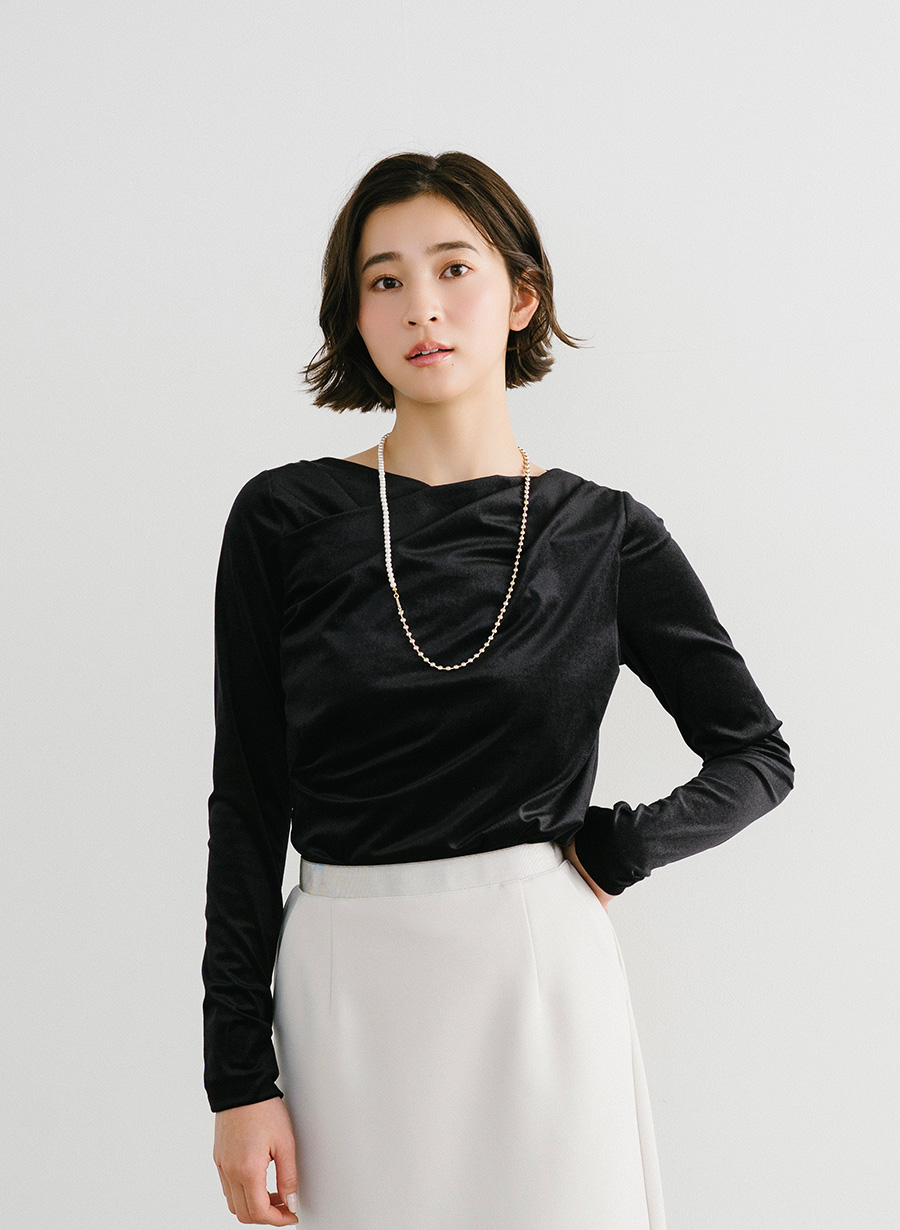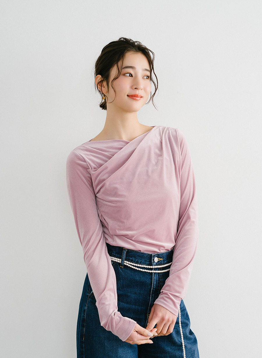 ・さりげないシアー感で大人の女性も着られるベロアトップス。