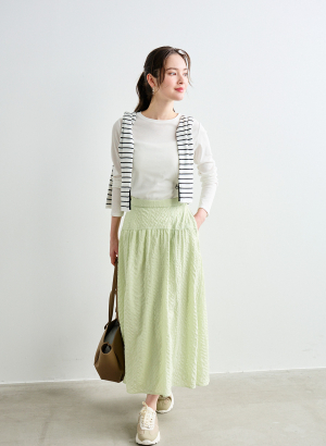 ・ウエスト周りに施した繊細な刺繍とタックディテール。