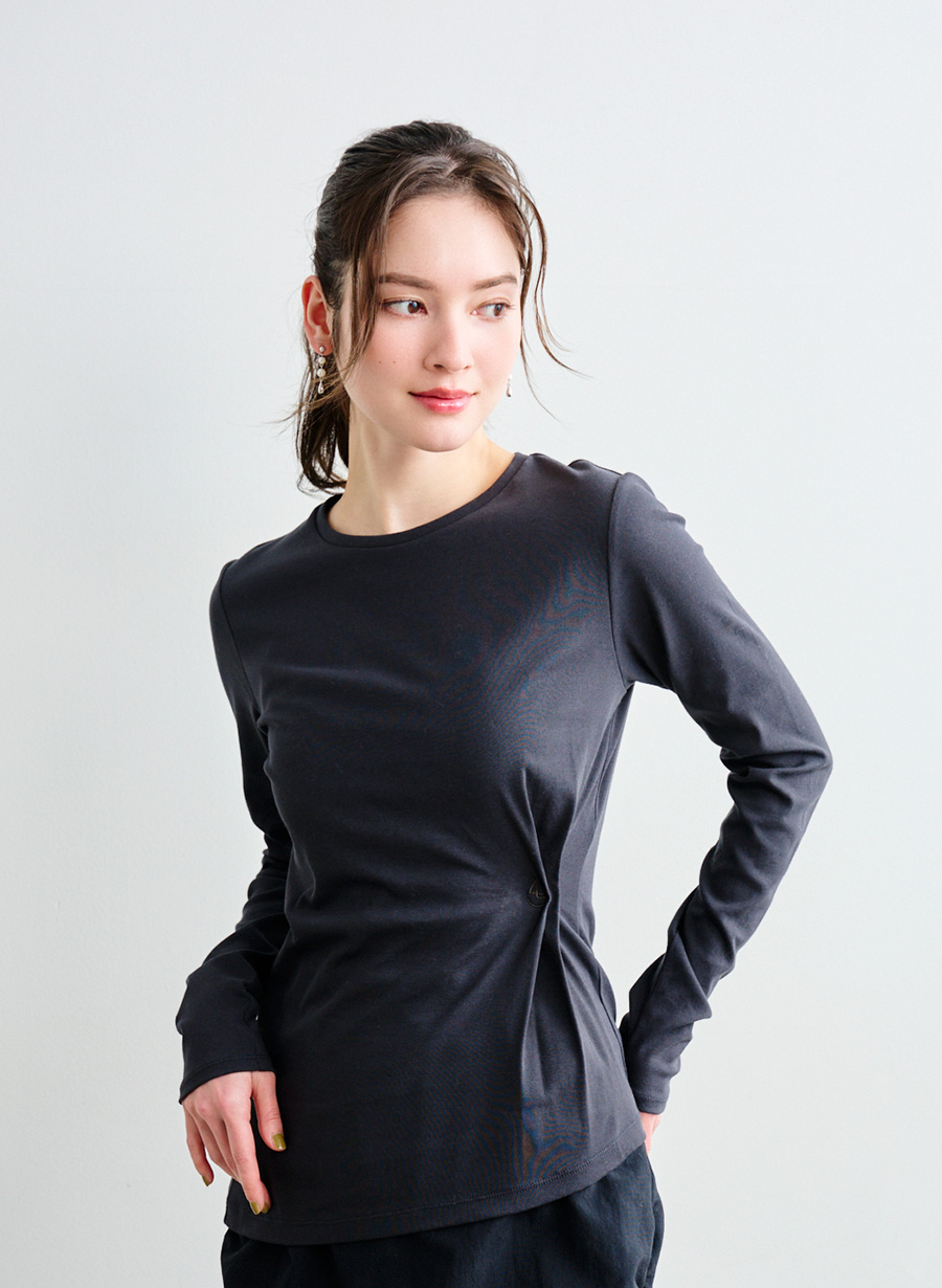 ・やわらかなフライス素材で、重ね着してももたつかず、快適な着心地です。