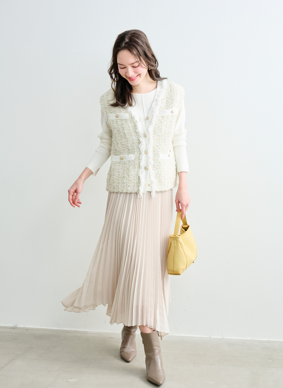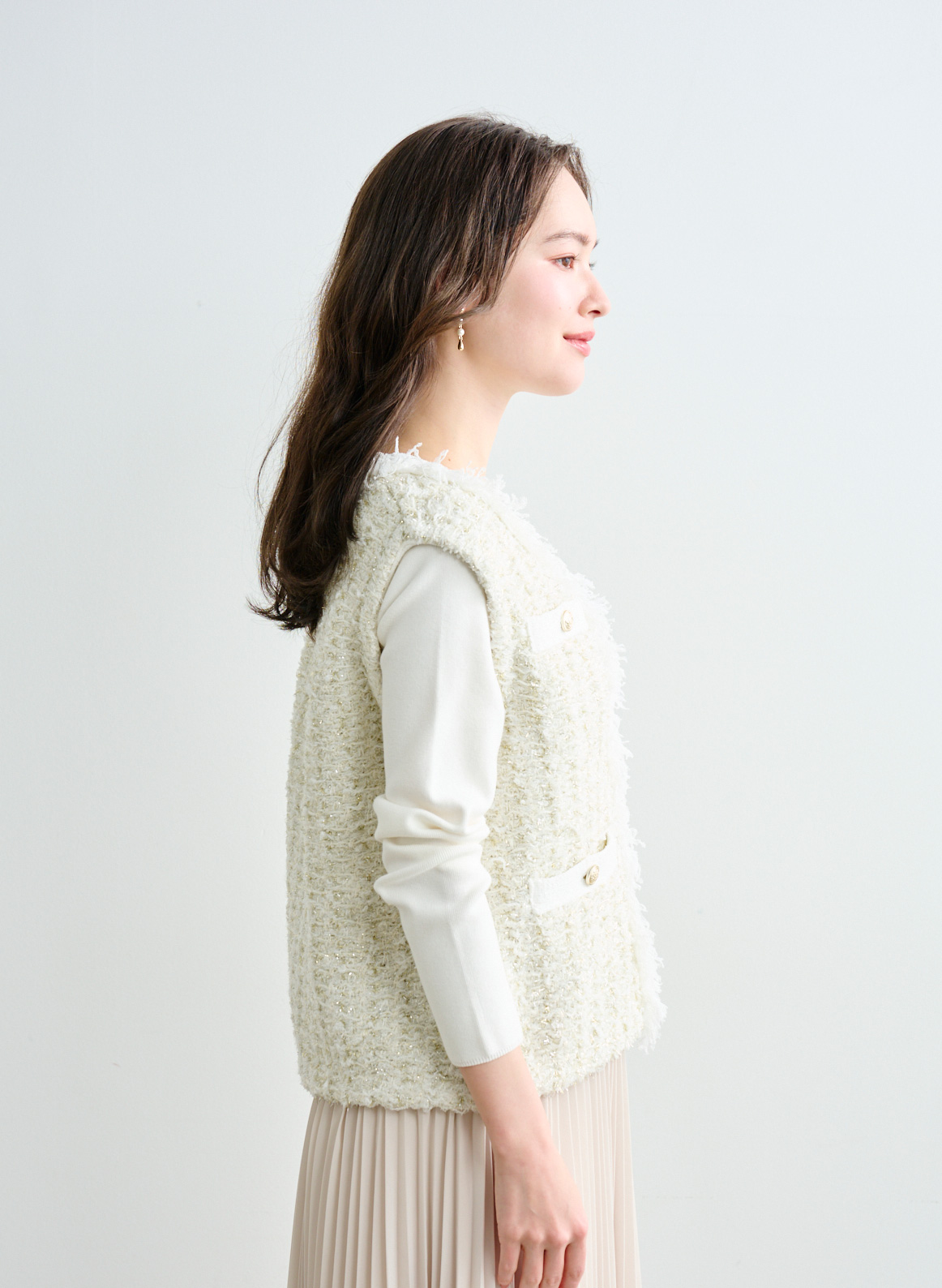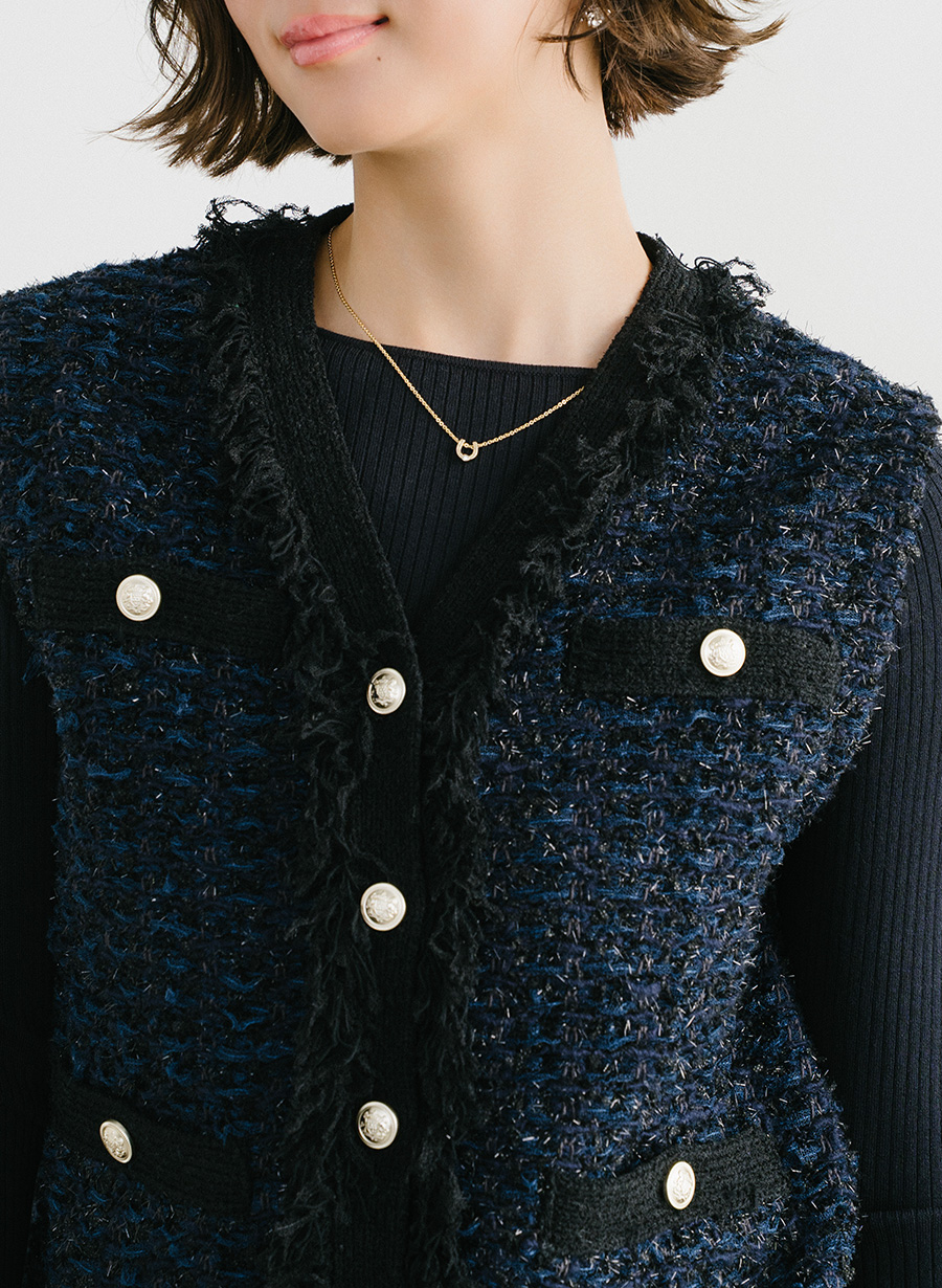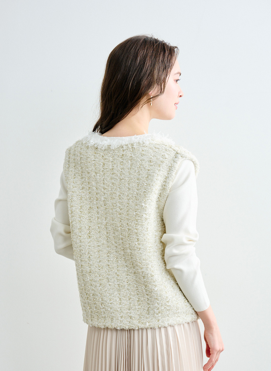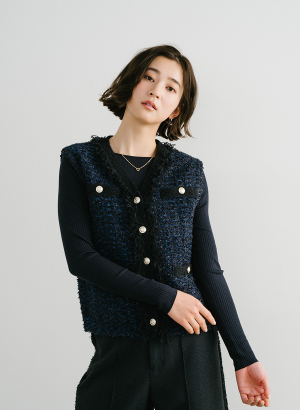 5. ツイード調ニットジレ