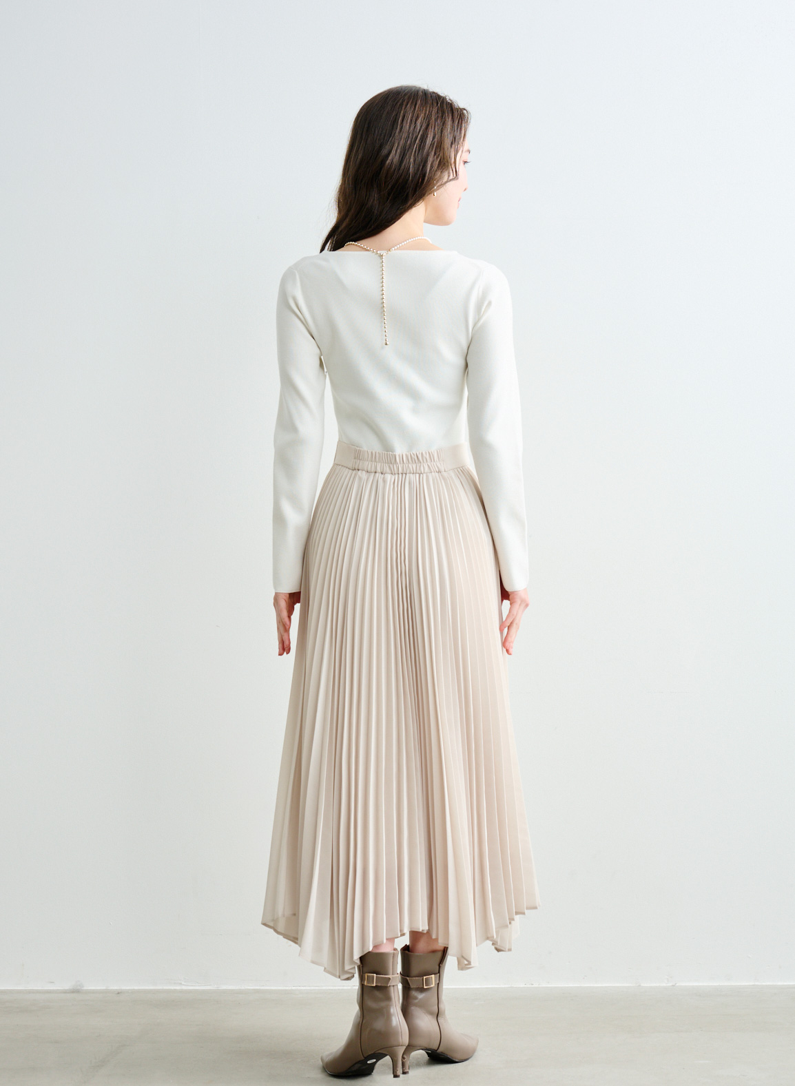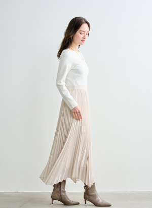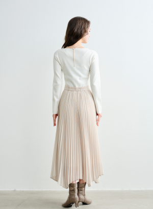 ・スカート部分は軽やかなシフォン素材のプリーツをドッキング。