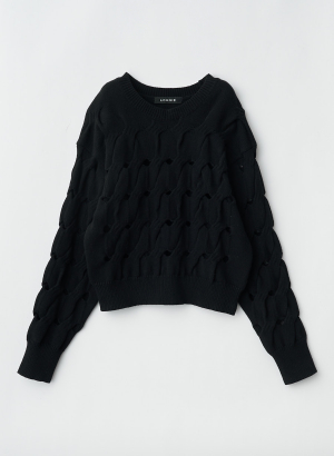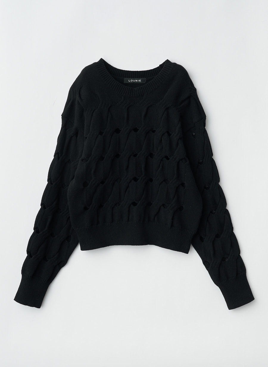 ≪5GGケーブル編み≫ ・アイレットがモードなざっくりケーブル柄のプルオーバーです。