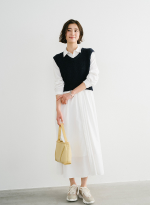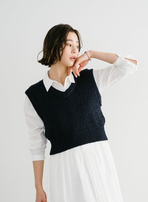 ・ ふんわり軽く、体型カバーも叶える万能なVネックベスト。