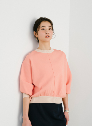 フェザーギャザースリーブニットプルオーバー