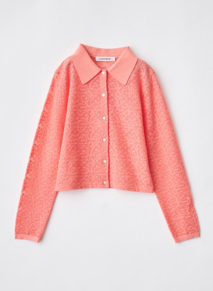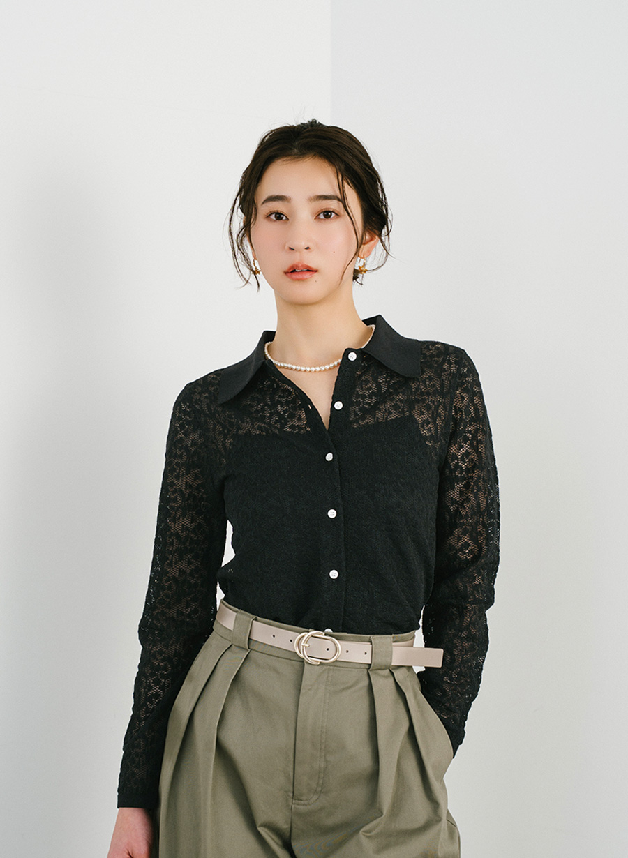・レーシーなジャカードモチーフ柄の衿付きニットシャツです。