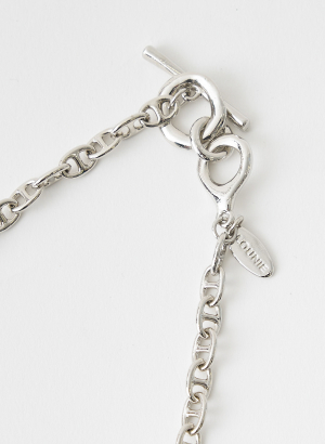 マンテル部分にもデザイン性のあるパーツをプラスし、どちらを前にしてもお使い頂ける前後着用可能なネックレスに仕上げました。