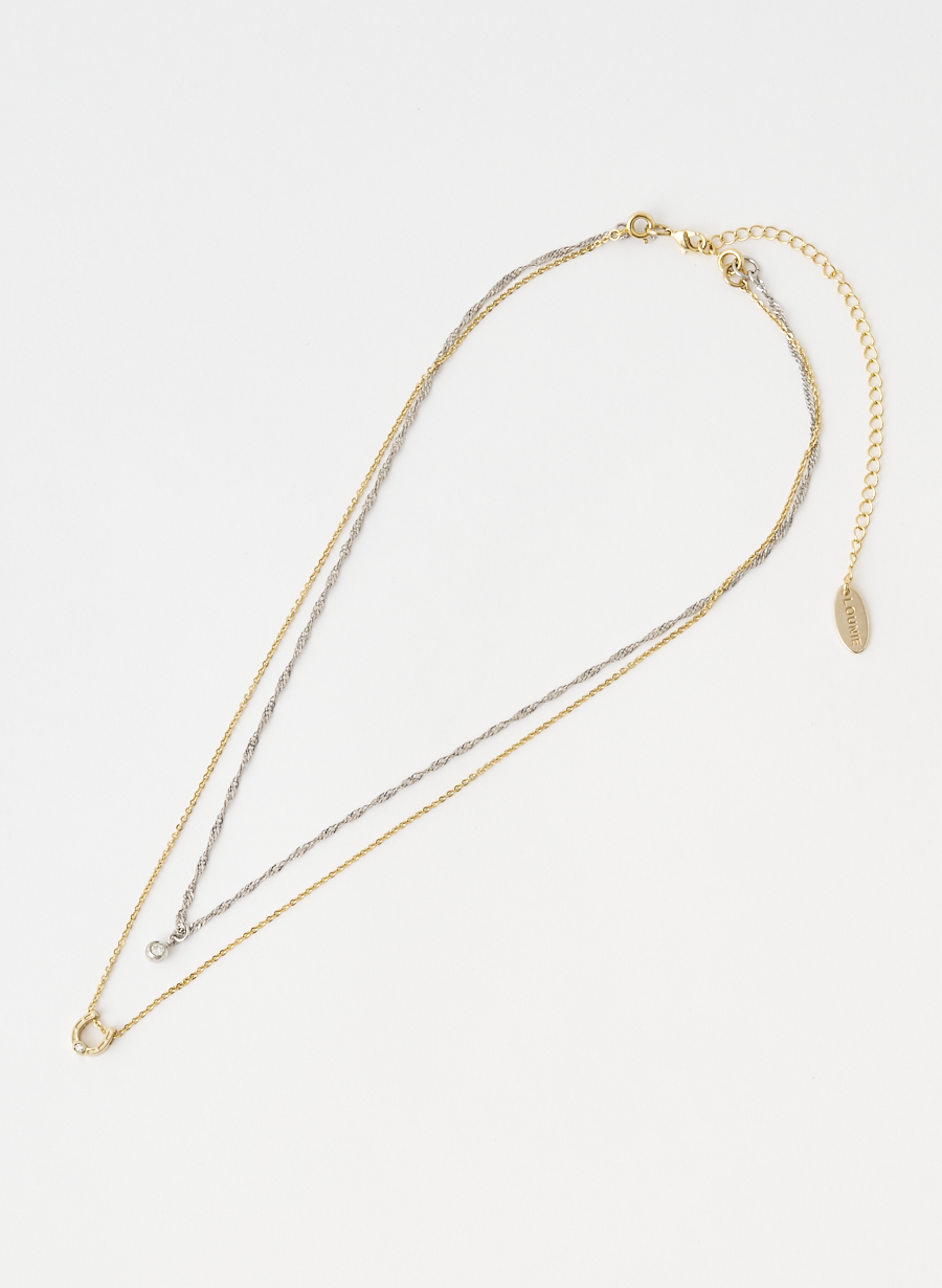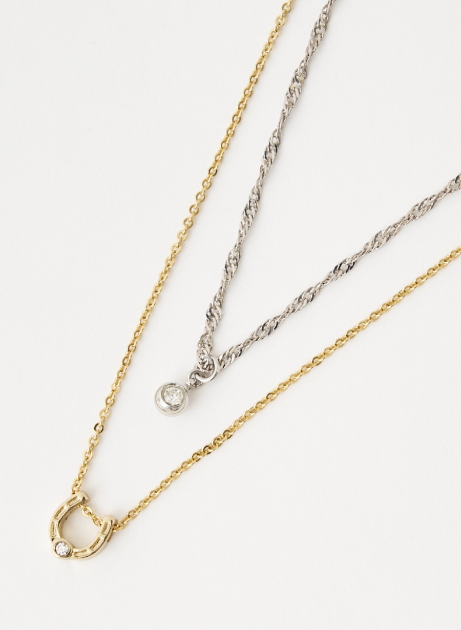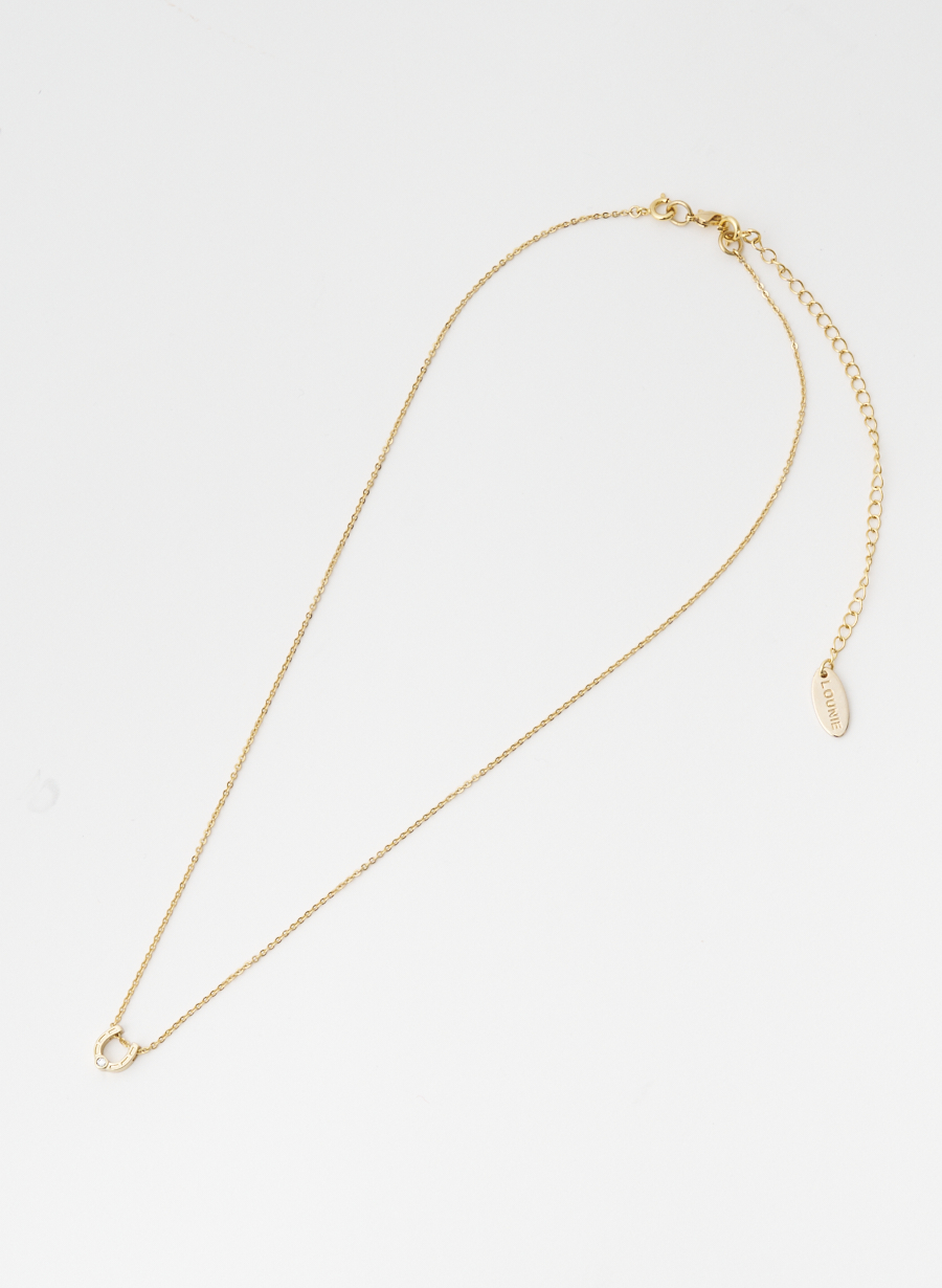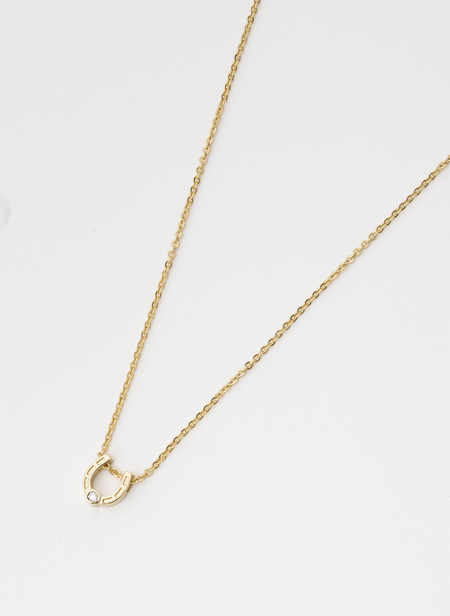 馬蹄型のモチーフと、エレガントな1粒ビジューをペンダントトップにあしらい、シンプルで使いやすいデザインに仕上げました。