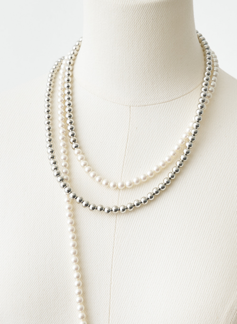 全長230cmのスーパーロングデザインで、多連にしてお使い頂くのはもちろん、たすき掛けのように肩にかけたり、ベルトのように腰に巻いて使ったり、スタイリングのアクセントになるようにアレンジしてお使い頂けるアイテムです。