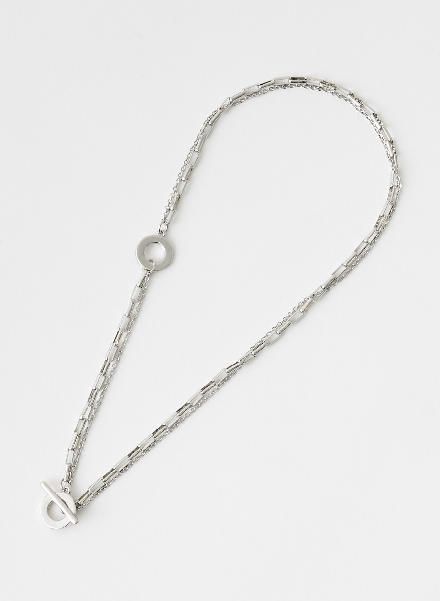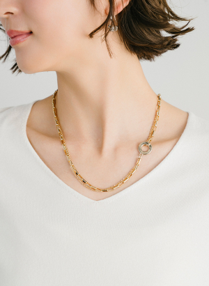 マンテルの付け位置を変えることで、Y字ラリエットとしても、ショートネックレスとしてもお使い頂ける2WAYデザインに仕上げました。
