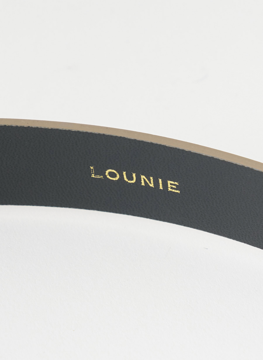フープを重ねたようなデザインバックルをアクセントにして、スタイリングにも合わせやすいベーシックアイテムとして企画しました。