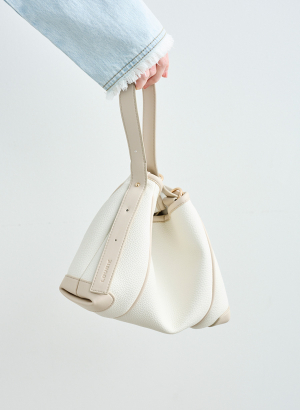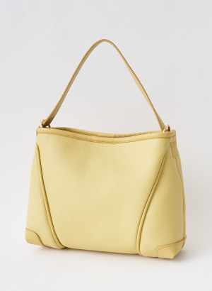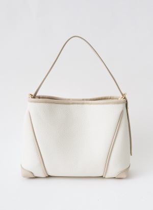 持ち手を片側に寄せてワンハンドルにすると、バッグのフォルムを変えてお楽しみ頂ける2WAYのデザインアイテムに仕上げました。