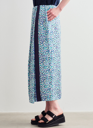 ・端にあしらった縦ラインを強調する配色ラインが腰回りをすっきり見せ、デザインをキリリと引き締めます。