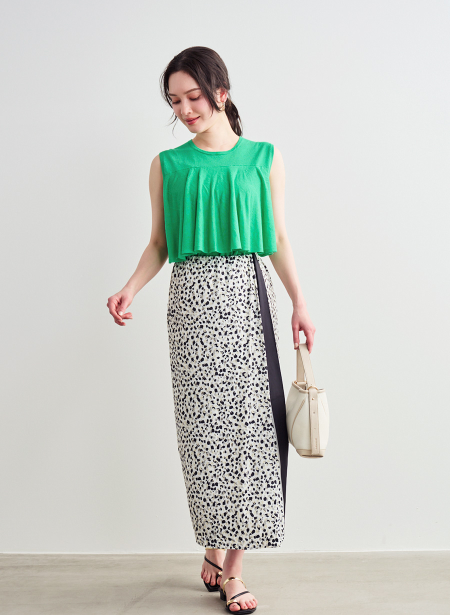 ・上品に映える微細で小ぶりな レオパード柄 と広がりを抑えたシルエットが、大人の落ち着いた華やかさを演出します。