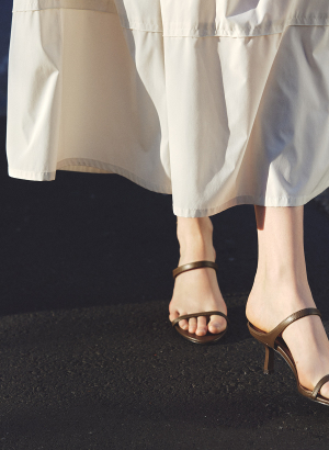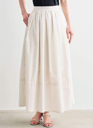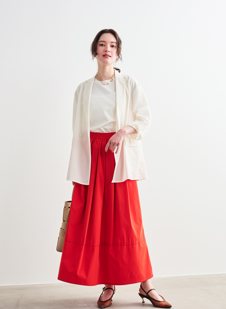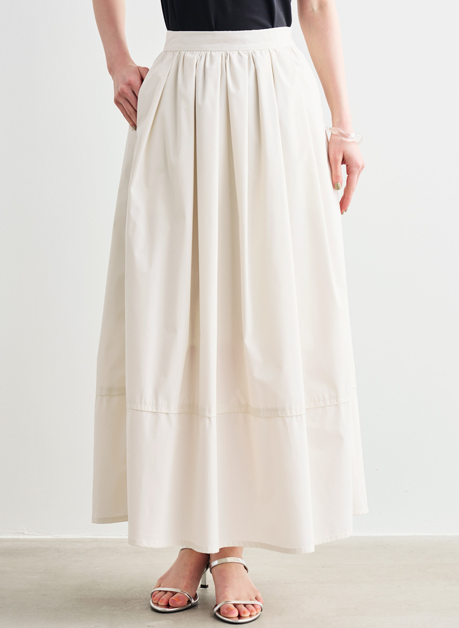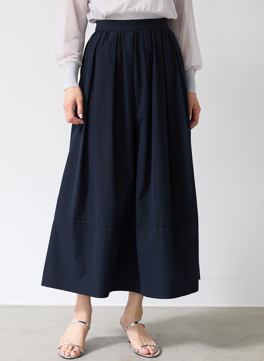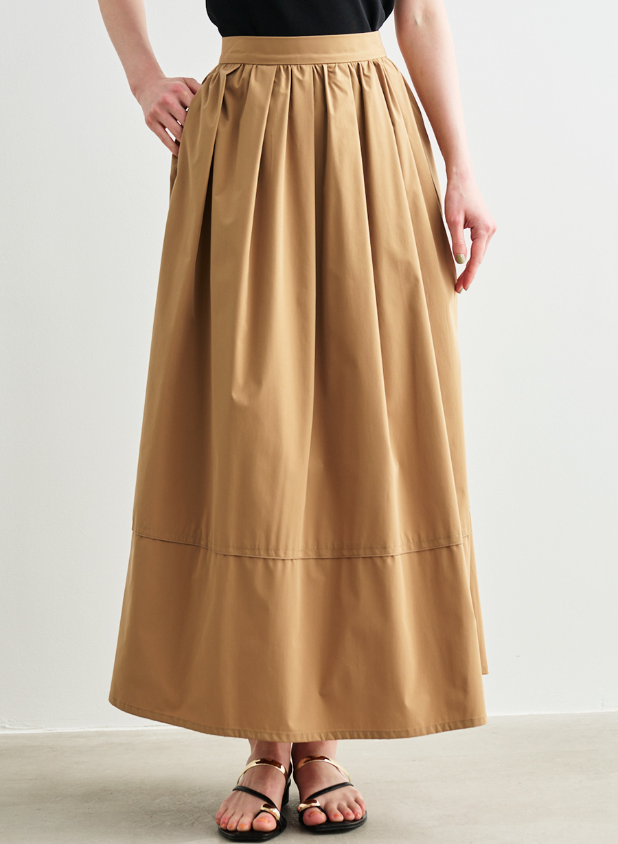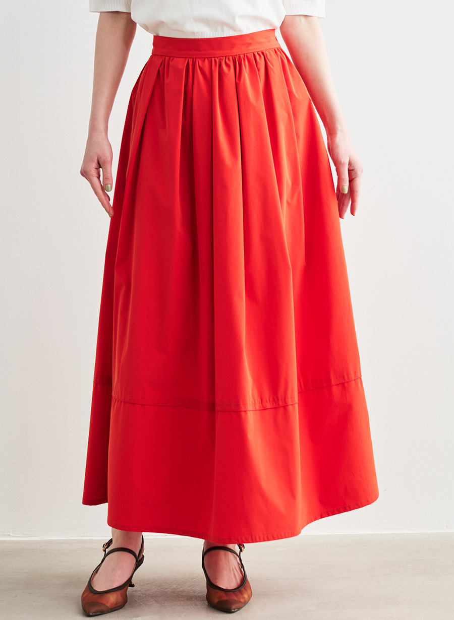 ・ウエストまわりに細かくタックとギャザーを施し、歩くたびに優雅に揺れるシルエットが目を惹くスカート。