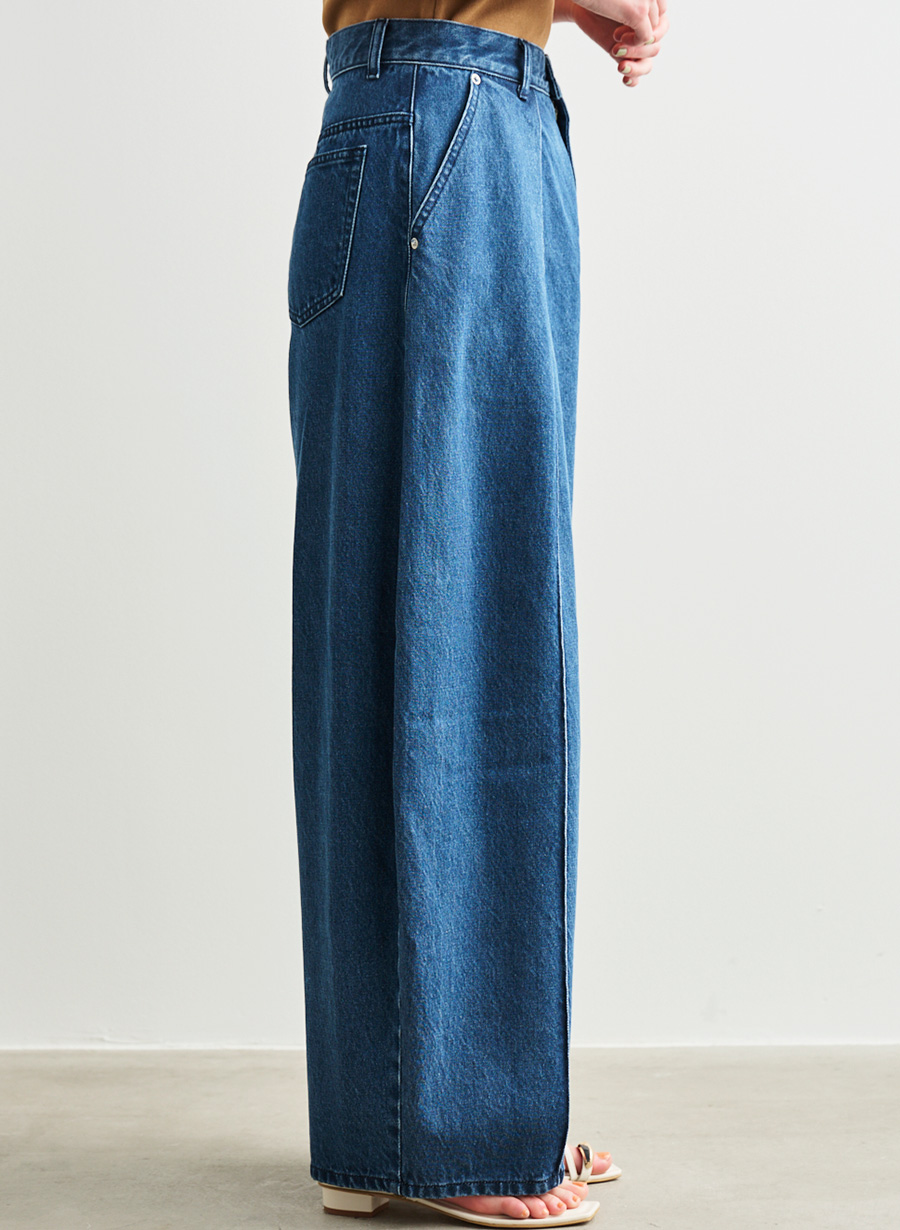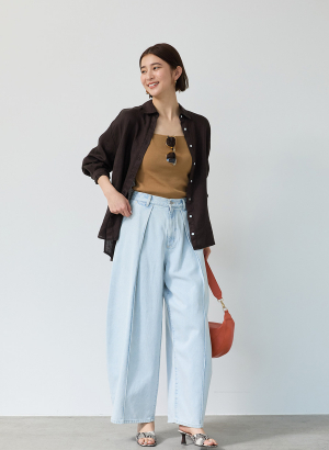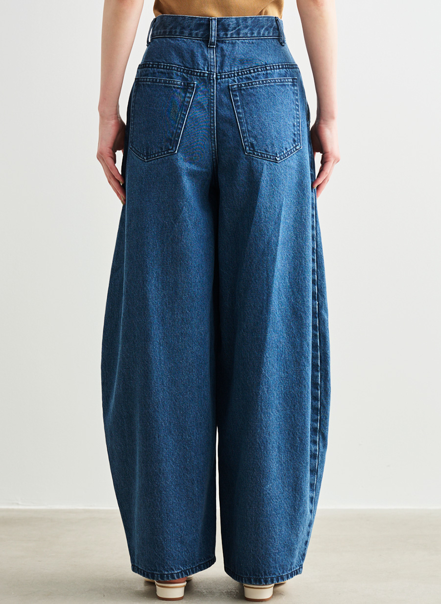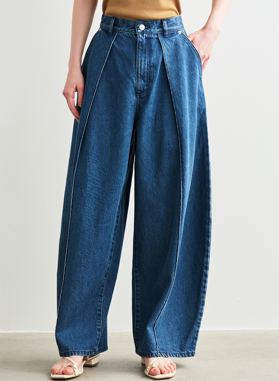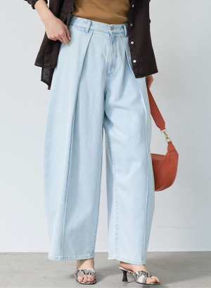 ・フロントに深く入れたタックが腰まわりに立体感を生み、バレルシルエットを自然にきれい見えさせるデザイン。