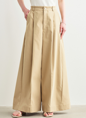 ・フロントに深めのタックを入れ、腰回りをすっきりと見せるデザイン。