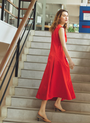 ・身頃から裾へとすとんと落ちる、縦ラインを強調するスレンダーシルエット。