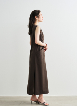 ・袖ぐりの分量をコントロールし、ノースリーブでも腕周りがすっきり見える設計。