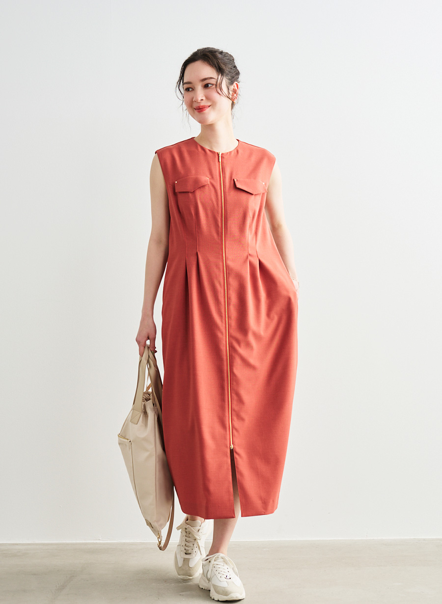 ・ウエスト切替とほのかなフレアラインが、立ち姿を美しく見せる計算されたシルエット。