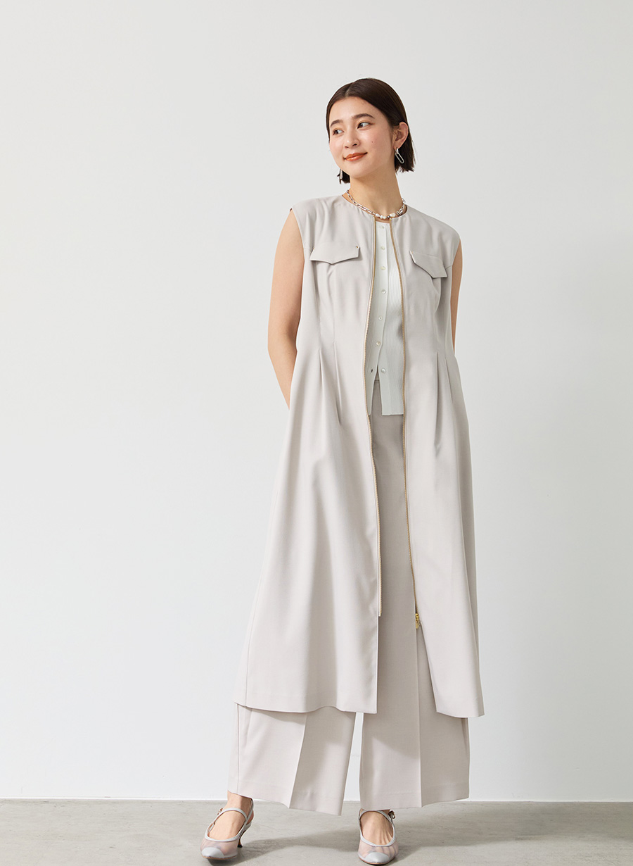 ・フロントジップにより、開けてジレとしても着用でき、着こなしに動きとモードな抜け感をプラス。